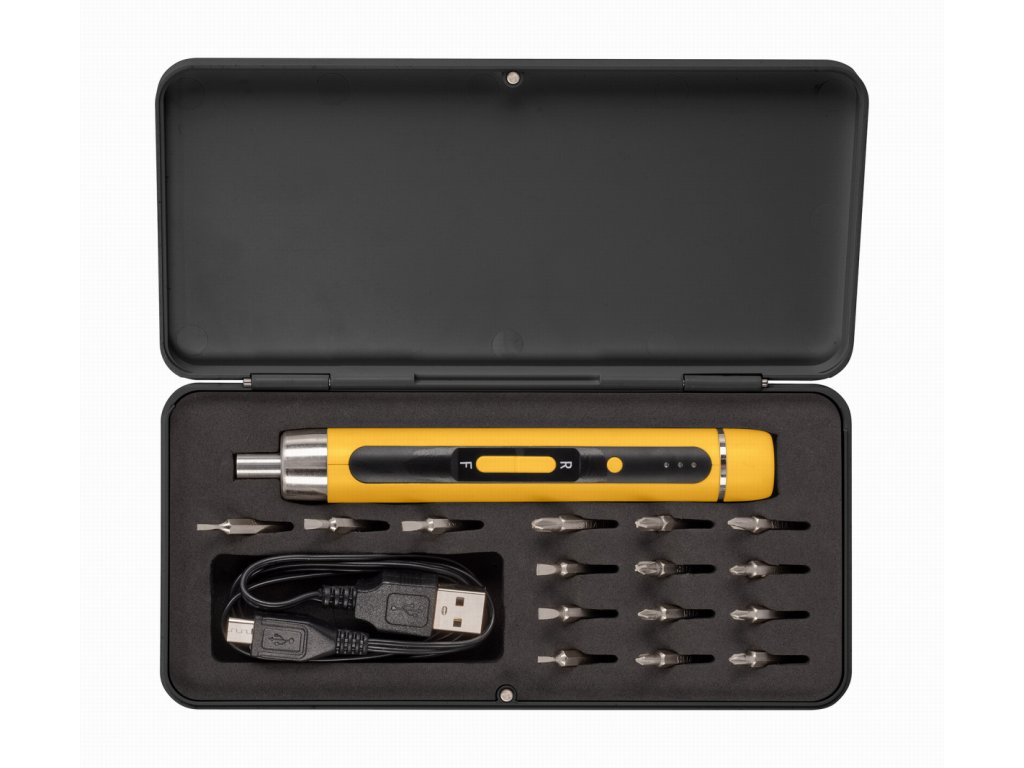 POWX00416 od PowerPlus je Aku 4V precizní šroubovák pro všechny domácí kutily. Díky jeho perfektnímu designu se pohodlně používá a vejde se přímo do kapsy. Tento kompaktní šroubovák má kapacitu baterie 320 mAh a maximální točivý moment 0,4 Nm. Pomocí tohoto lehkého šroubováku utáhněte nebo povolte i ty nejmenší šrouby, jako jsou ty, které najdete u notebooků, dioptrických brýlí nebo slunečních brýlí. Je to také velmi užitečný nástroj pro každého stavitele modelů. Vestavěný držák bitů urychluje proces výměny bitů, zatímco 2 pracovní LED světla zajistí, že budete mít vždy jasný výhled na obrobek. POWX00416 můžete nabíjet pomocí dodaného USB kabelu. Nejen, že se tento precizní šroubovák dodává v praktickém kufříku, ale také obsahuje 15 šroubovacích bitů, takže se můžete bez otálení pustit do práce.TECHNICKÁ SPECIFIKACE: