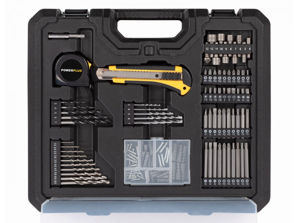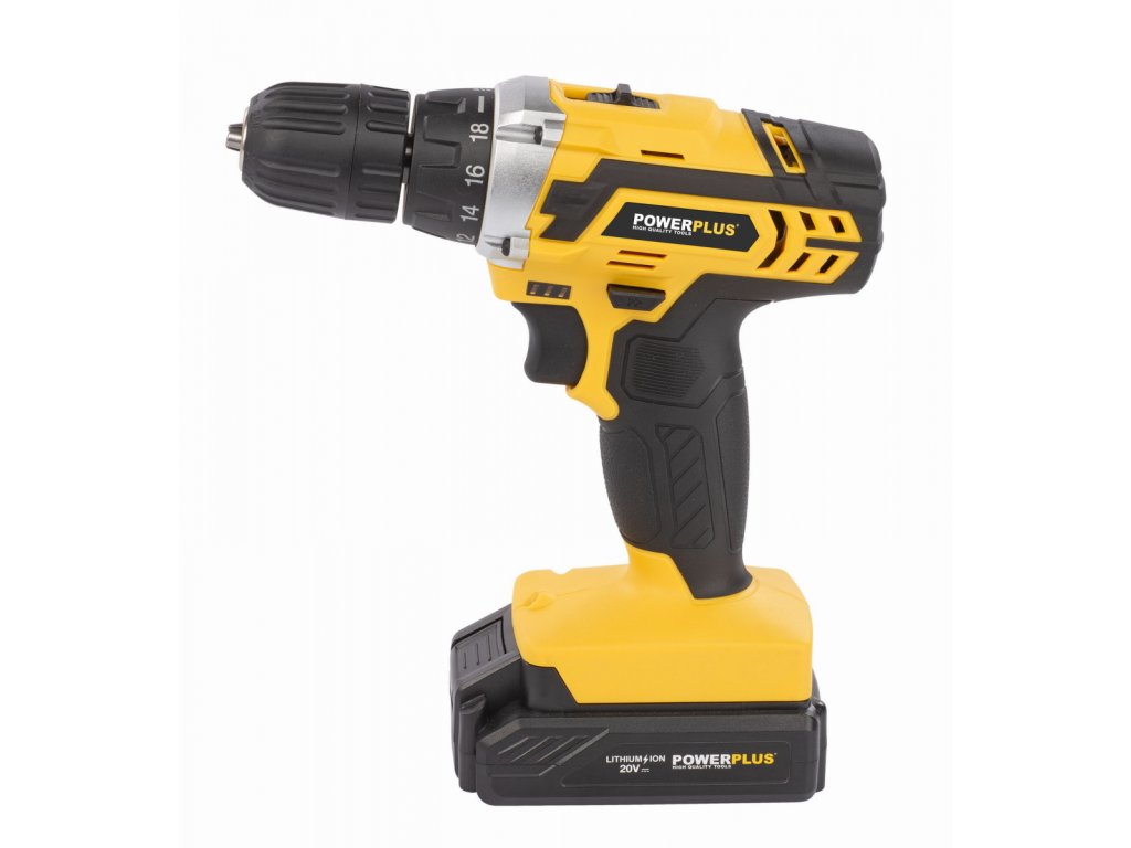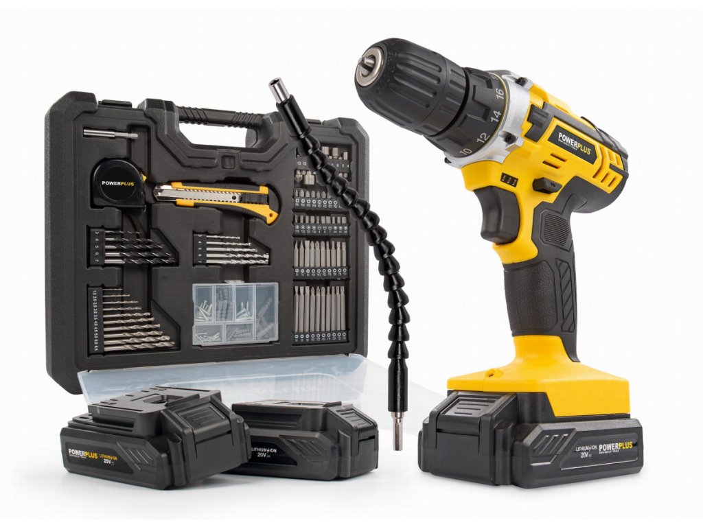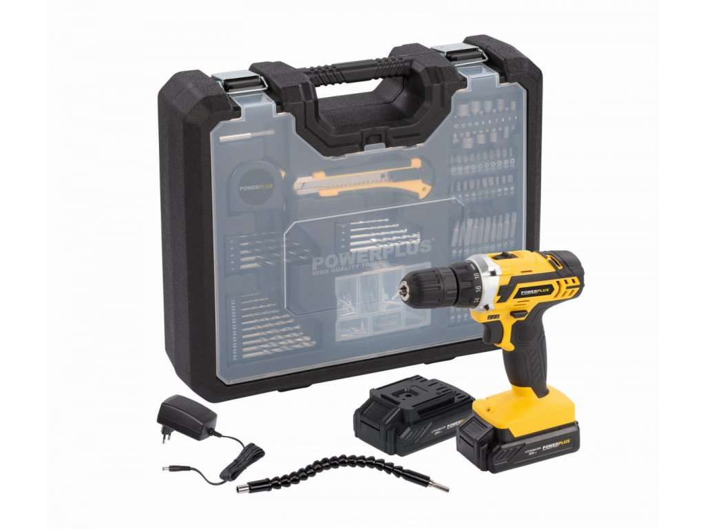 Tato 20V akumulátorová vrtačka POWX00830 od Powerplus je všestranný pomocník pro většinu šroubovacích prací v domě a kolem něj a pro lehké vrtací práce. Směr otáčení lze změnit stisknutím tlačítka. Vrtačka/šroubovák má dva převody s maximální rychlostí otáčení 400 až 1400 otáček za minutu což umožňuje stroji dosáhnout maximální kapacity vrtání prům.20 mm do dřeva a prům.8 mm do oceli. Rychloupínací sklíčidlo 10 mm zajišťuje nezbytnou jednoduchost použití. Motor poskytuje maximální utahovací moment 35 Nm. Díky 19 nastavením krouticího momentu lze stroj snadno přizpůsobit jakémukoli šroubování a vrtání. Pracovní světlo poskytuje dostatek světla pro dobrou práci i na špatně osvětlených místech. Vrtačka/šroubovák se dodává v praktickém úložném kufříku s celkem 134 příslušenstvím. Součástí stroje jsou 2 baterie a rychlonabíječka. Každá baterie má kapacitu 1300 mAh. Součástí je také rozsáhlá sada šroubovacích bitů a vrtáků, praktické ruční nástroje, jako je nůž a měřicí páska, a sada šroubů a hmoždinek.
