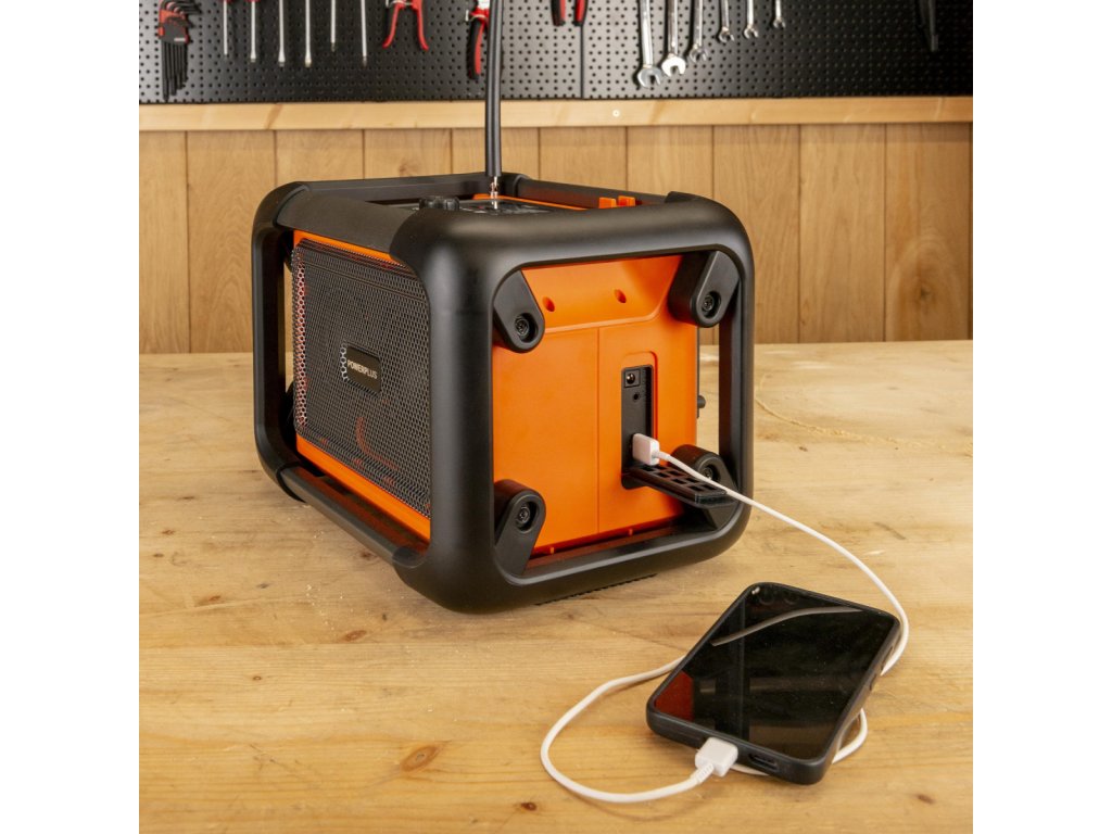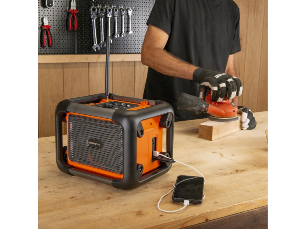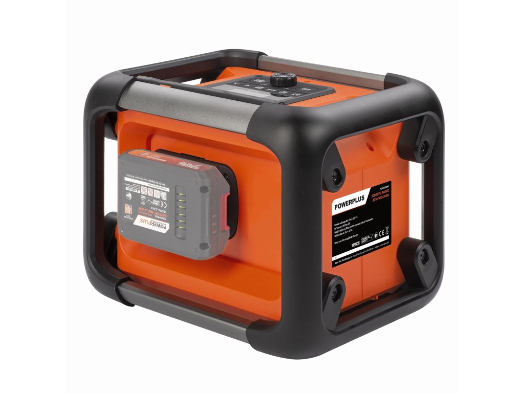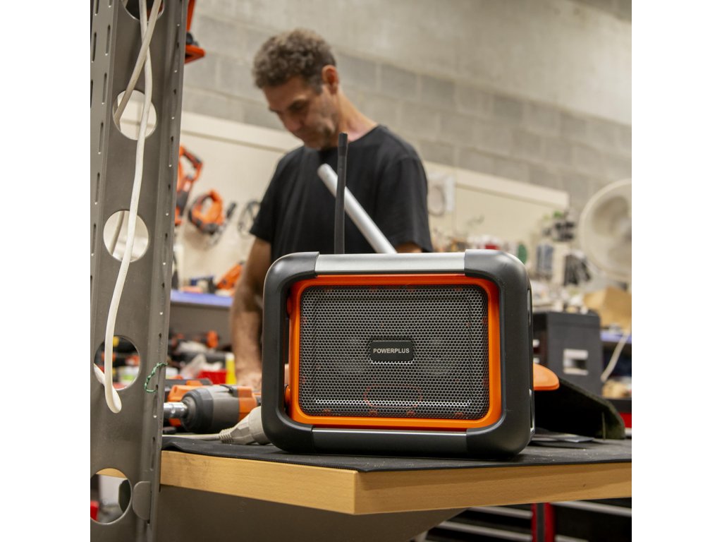 Přenosné stavební rádio POWDP8061 od PowerPlus – hudba vždy po ruceDopřejte si oblíbenou hudbu při práci v dílně, na stavbě nebo při relaxaci na zahradě s tímto bezdrátovým rádiem Dual Power. Je lehké, přenosné a okamžitě oživí každé pracovní prostředí.Co všechno rádio nabízí?Toto přenosné stavební rádio umožňuje uložit až 6 oblíbených stanic a přehrávat hudbu i z chytrého telefonu – jednoduše přes Bluetooth nebo AUX vstup. K dispozici je také USB-C port, kterým můžete nabíjet svůj telefon či jiné zařízení.Poznámka: Baterie a nabíječka nejsou součástí balení. Prodávají se samostatně a jsou kompatibilní s celou řadou Dual Power. Použít můžete další baterie ze série DUAL POWER o napětí 20V a také i baterie o napětí 40V. Použití 40V baterie zajišťuje ještě delší dobu chodu stroje ve srovnání s 20V verzí.Hlavní výhody:• Široká škála zdrojů hudbyRádio podporuje DAB plus i FM stanice a umožňuje přehrávání hudby přes Bluetooth, AUX nebo USB-C – přizpůsobí se každé situaci. • Odolné provedeníOdolnost vůči nárazům a dešti dělá z tohoto rádia ideálního společníka na stavbu, do dílny i na zahradu. Hudbu si tak vychutnáte i v náročných podmínkách.• Praktické funkceDigitální displej zobrazuje aktuální čas, název stanice i přehrávanou skladbu. Funkce vyhledávání podobných pořadů podle žánru vám pomůže objevit nové oblíbené stanice.• 2 režimy ekvalizéruPřepínejte mezi dvěma zvukovými režimy – standardním a režimem s extra basy – podle své nálady nebo typu hudby.• Napájení ze sítě i baterieRádio můžete používat připojené k elektrické síti, nebo zcela bez kabelů díky kompatibilní baterii.• Pohodlné přenášeníPraktické madlo umožňuje snadné přenášení – rádio POWDP8061 si vezmete s sebou kamkoli.