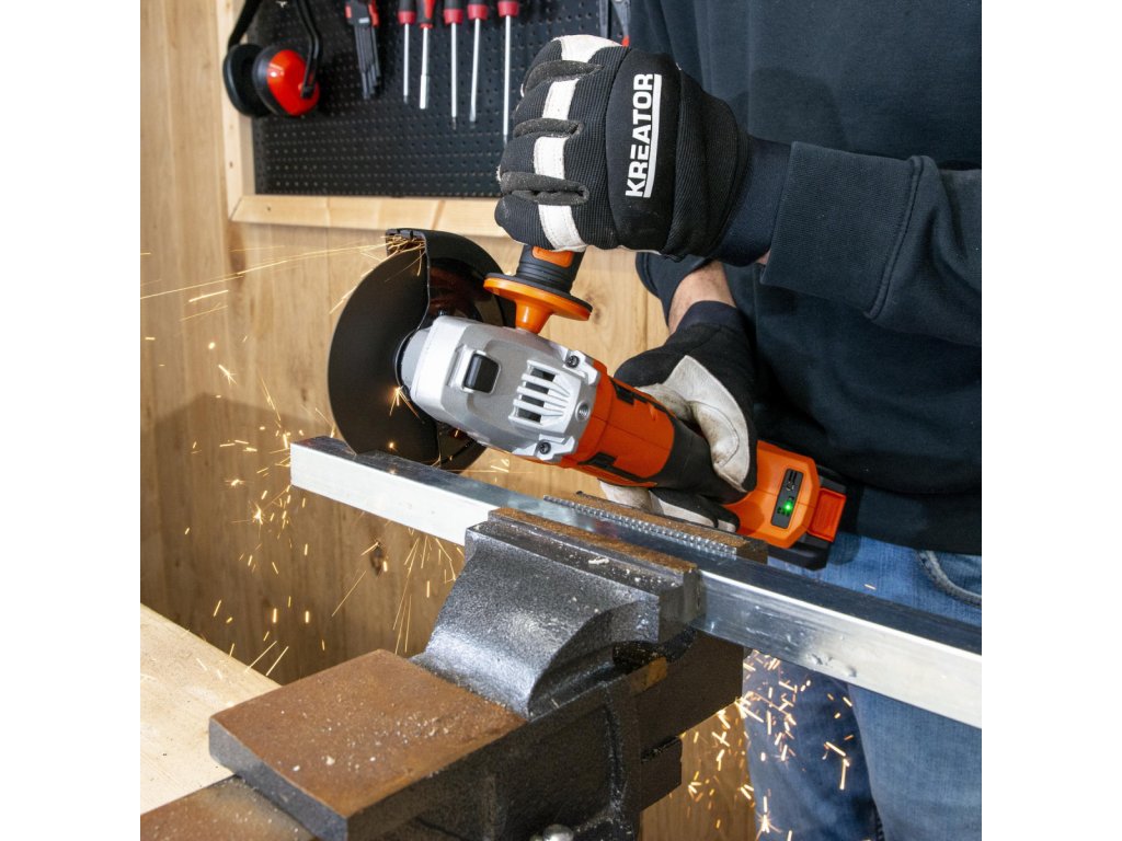 Aku úhlová bruska používá kompaktní řezný kotouč o průměru prům.125 mm, díky čemuž se snadno dostanete i do těžko přístupných míst. Nástroj je ideální pro vytváření malých drážek ve zdi, řezání a odstraňování otřepů z kovu a kamene.