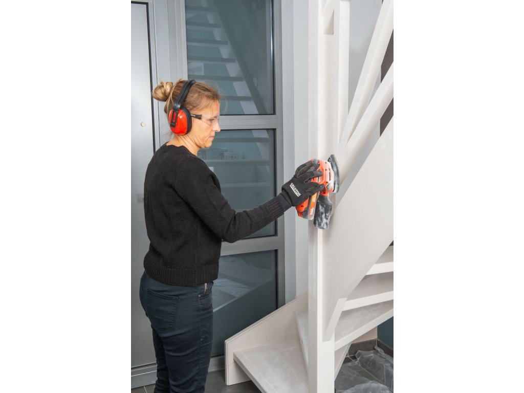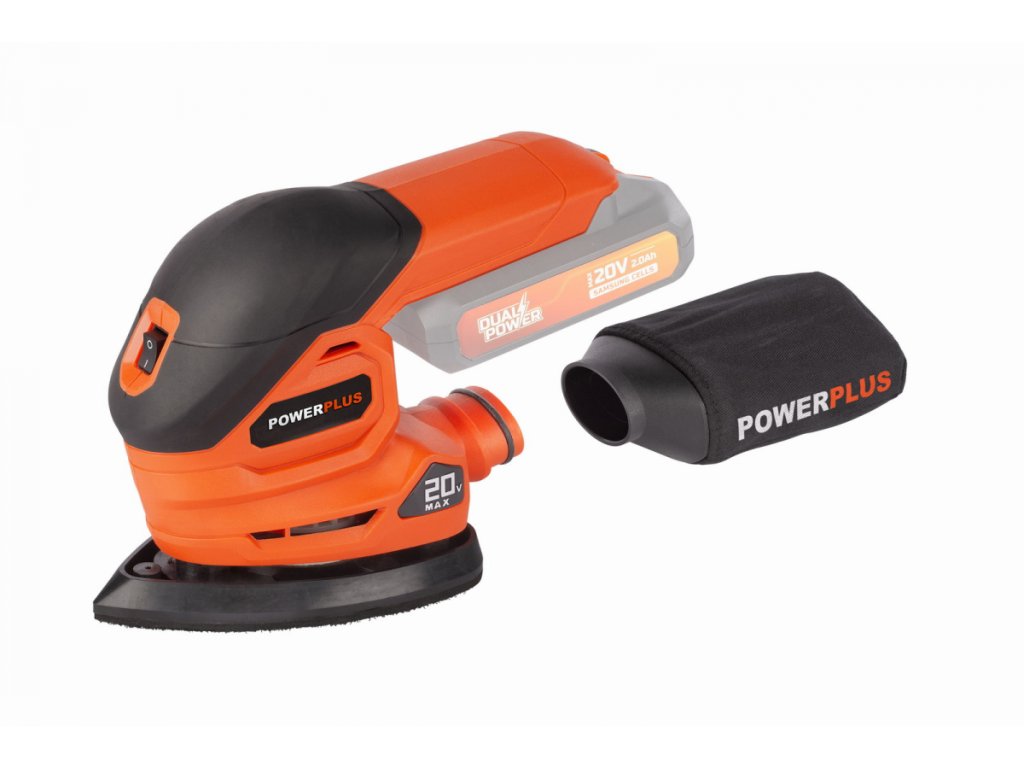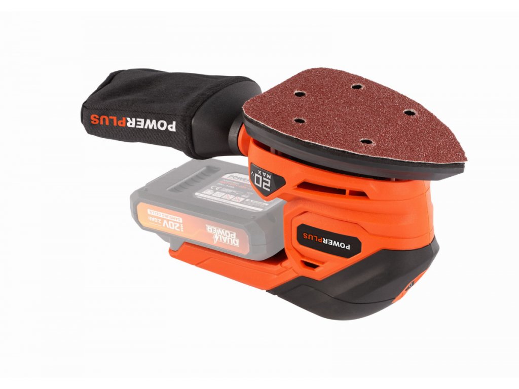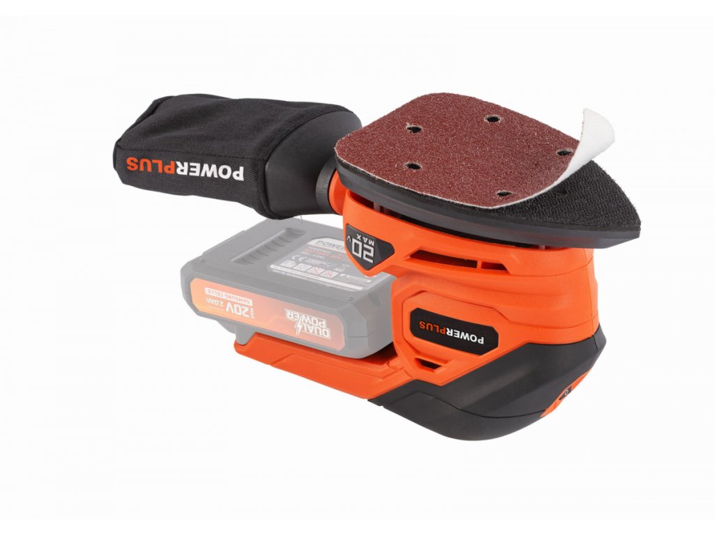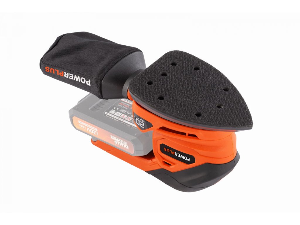 Akumulátorová mini delta bruska POWDP50200 20 V od PowerPlus je ideálním nástrojem pro různé brusné úkoly. Díky své trojúhelníkové brusné desce se nářadí dostane i do těch nejužších rohů. Akumulátorová bruska poskytuje až 24 000 brusných pohybů za minutu, takže každý brusný úkol je hotový během okamžiku. Brusná deska měří 140 x 80 mm a je vybavena systémem suchého zipu, který umožňuje rychlou a snadnou výměnu smirkového papíru. Deska je perforovaná, takže brusný prach se může shromažďovat ve sběrném sáčku. Protiskluzový povrch Softgrip poskytuje perfektní přilnavost a kontrolu při broušení. Stroj je dodáván bez baterie a nabíječky. Použít můžete baterie ze série DUAL POWER o napětí 20V a také i baterie o napětí 40V. Použití 40V baterie zajišťuje ještě delší dobu chodu stroje ve srovnání s 20V verzí.