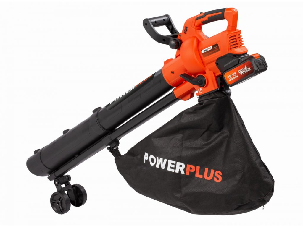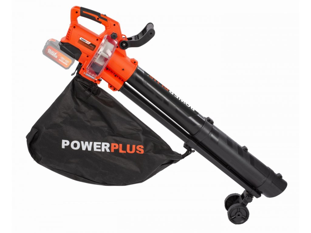 Akumulátorový 40V vysavač a foukač listí POWDPG75270 Powerplus nabízí plnou volnost pohybu, bez překážek prodlužovacích kabelů. Jeho silný bezuhlíkový motor poskytuje více energie a zvyšuje funkčnost baterie. Navíc potřebuje jen malou údržbu. Foukač listí má šest rychlostí foukání, maximálně 210 km/h a objem vzduchu až 9,5 m3/min. To stačí k odstranění i mokrých a zaseknutých listů. Po použití lze třídílnou trubici snadno rozložit, takže POWDPG75720 lze skladovat prostorově úsporně. Kromě funkce foukání je nástroj Dual Power vybaven také režimem sání. Vestavěný drtič drtí vysávaný zahradní odpad jako spadané listí a trávu v poměru 15: 1. Skartovaný odpad je následně chycen do 45l sběrného vaku. Díky elektronické regulaci rychlosti a bezpečnostnímu zámku je foukač listí velmi bezpečným nástrojem. Je vybaven ergonomickým měkkým úchopem a snadno se udržuje a čistí. Trubka je podepřena dvěma kolečky, zachycují největší část hmotnosti stroje a při používání proto chrání záda uživatele. Použití pouze se 40V bateriemi ze série DualPower.TECHNICKÁ SPECIFIKACE:
