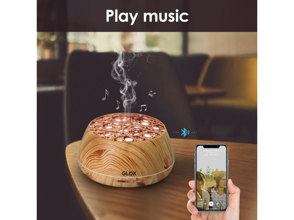 Aroma difuzér a zvlhčovač je vybaven integrovaným reproduktorem. Díky Bluetooth konektivitě lze zařízení snadno propojit s dalšími zařízeními. Je určen pro použití esenciálních olejů, které pomáhají vytvořit příjemnou atmosféru. Ultrazvuková technologie zajišťuje efektivní rozptyl vůní a vlhkosti a zároveň eliminuje zápach, čímž zlepšuje kvalitu vzduchu. S kapacitou 400 ml umožňuje difuzér dlouhodobé používání a nabízí 14 variant LED podsvícení pro přizpůsobení atmosféry. Zařízení má výdrž až 10 hodin nepřetržitého provozu a je vybaveno horním plněním pro snadné doplňování vody. Nízká hlučnost zaručuje nerušené používání, zatímco časovač umožňuje automatické nastavení doby provozu. Pro bezpečnost se difuzér automaticky vypne při nedostatku vody. Ovládání je manuální, pomocí tří tlačítek, a nabízí nastavitelnou intenzitu páry pro individuální potřeby. Jedinečný design zařízení se hodí do každého interiéru.