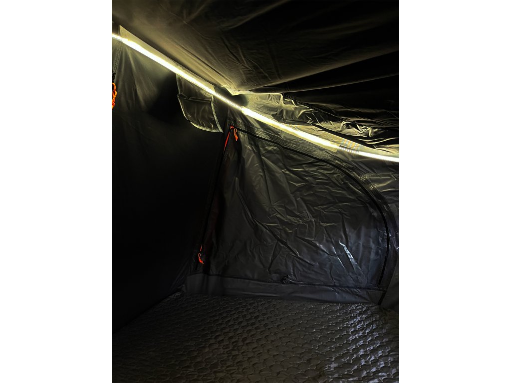 Uvnitř se nachází komfortní pěnová matrace o rozměrech 195 x 117 x 7,5cm se snímatelným potahem, kterou lze snadno vyjmout a vyčistit. Samozřejmostí je antikondenzační podložka a vnitřní izolační vrstva, které pomáhají udržet suché a příjemné prostředí i při chladnějších nocích.