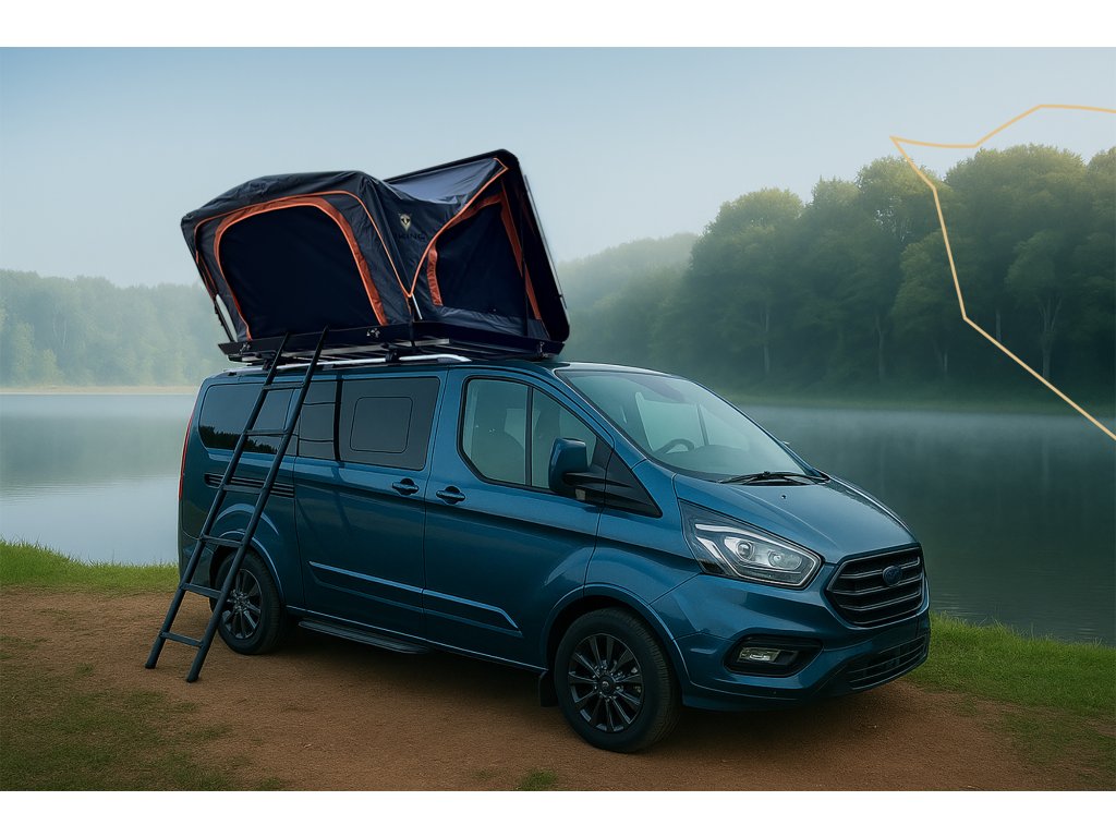 Střešní stan s plnou hliníkovou skořepinou • Vodní sloupec: PU 4000 mm • Počet osob: 2 • Rychlá montáž • Výbava: pěnová matrace, antikondenzační podložka, izolační vrstva, moskytiéry • Integrovaný elektrický rozvod (Big Anderson, USB-A, cigaretová zásuvka) • LED světlo (LED pásky) • Hmotnost: 70kg • Rozměry v rozloženém stavu: 223,5 × 130 × 135 cm
