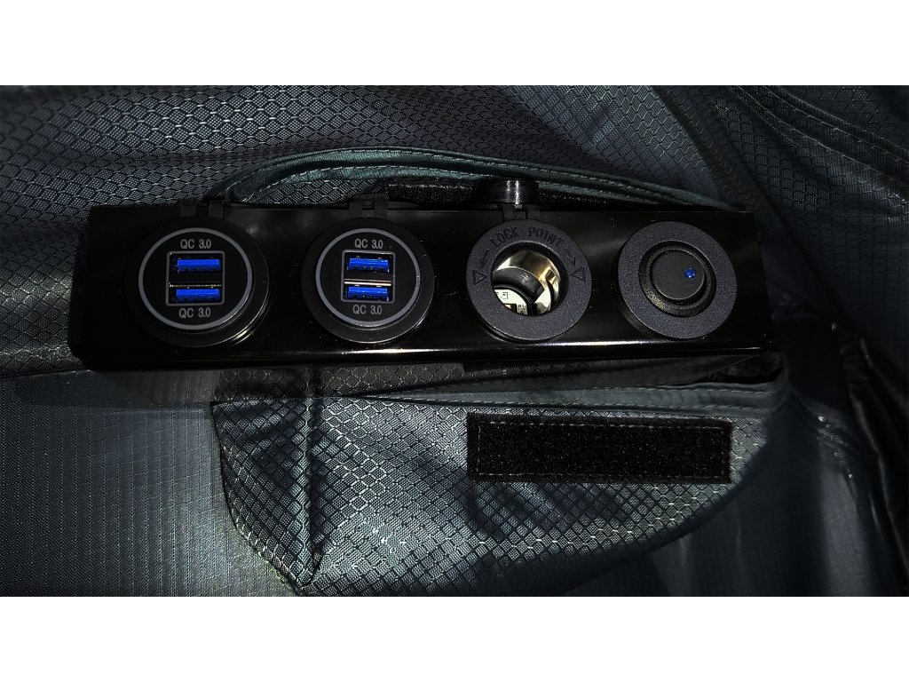 - Integrovaný elektrický rozvod (Big Anderson, USB-A, USB-C, cigaretová zásuvka)