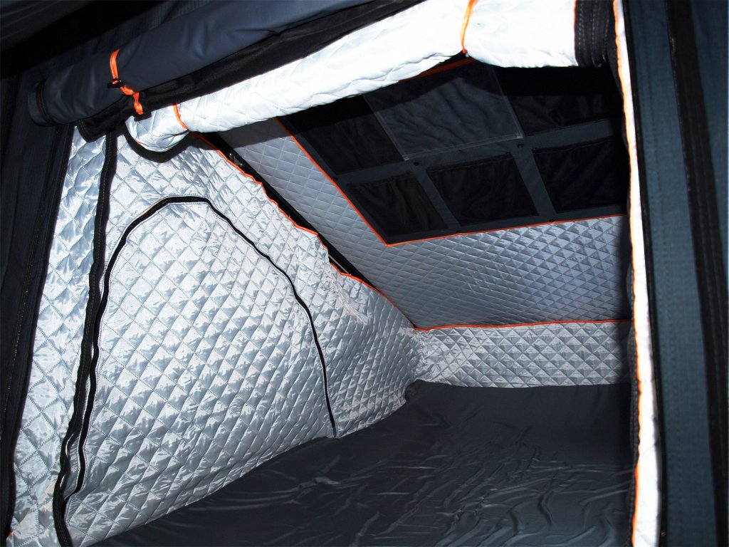 Uvnitř se nachází komfortní pěnová matrace o rozměrech 200 × 135 × 5 cm se snímatelným potahem, kterou lze snadno vyjmout a vyčistit. Samozřejmostí je antikondenzační podložka a vnitřní izolační vrstva, které pomáhají udržet suché a příjemné prostředí i při chladnějších nocích.