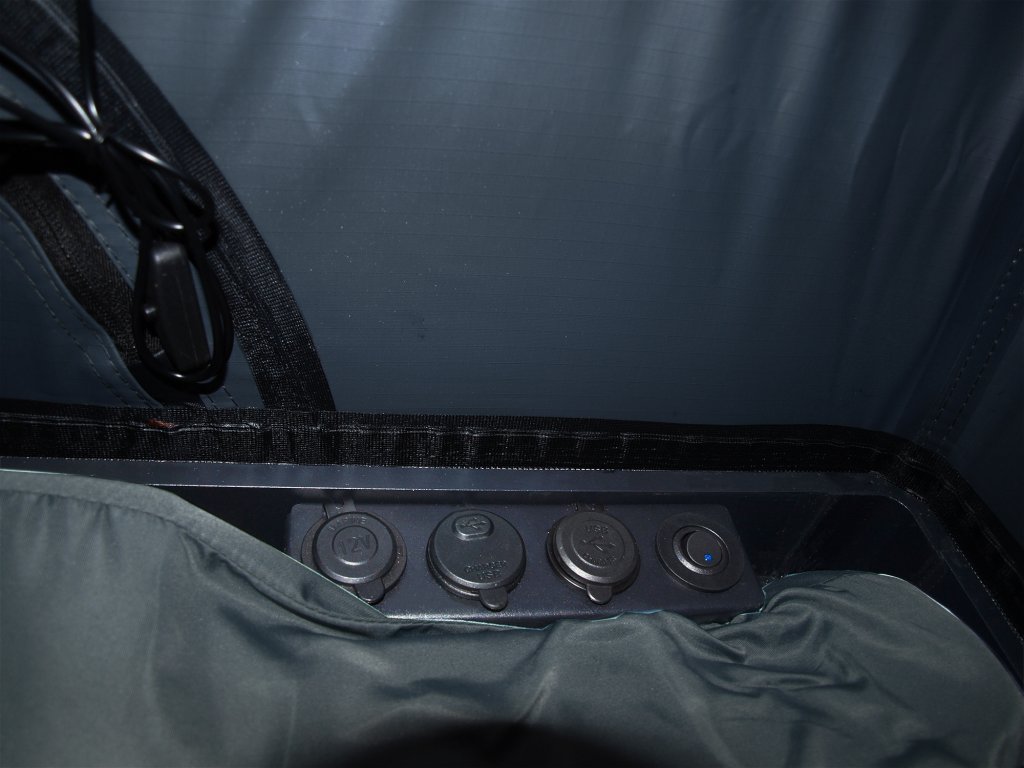 Jednou z hlavních výhod tohoto autostanu je integrovaný připojovací panel, který umožňuje napájení Vaší elektroniky kdykoliv potřebujete.