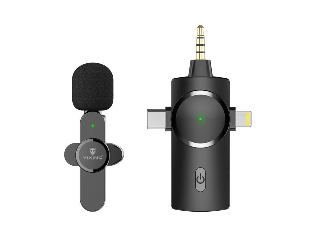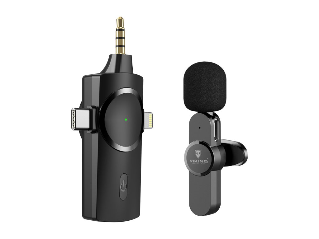 Malý, všesměrový, bezdrátový "clip-on" mikrofon Viking M360/3in1 je ideálním doplňkem pro všechny smartphony. Díky velké výdrži a dosahu přes 100m je tento mikrofon využitelný kdekoliv, kde je potřeba zkvalitnit nahrávaný audio/video záznam. Mikrofon disponuje třemi konektory (Lightning, USB-C, Jack 3.5mm), můžete jej tak připojit prakticky k jakémukoli zařízení (notebooku, smatphonu, kameře atd.)