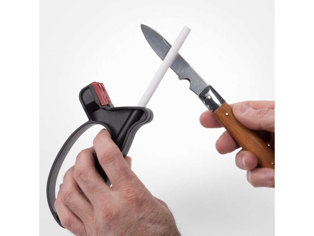Bruska na nože a nůžky. Vraťte nože a nůžky do stavu ostrosti jako břitva s tímto brouskem na nože a nůžky. KRTH01101 od Kreator je vybaven zasouvacím keramickým lešticím kamenem. Díky ochraně rukou si můžete bezpečně nabrousit nože a nůžky....
