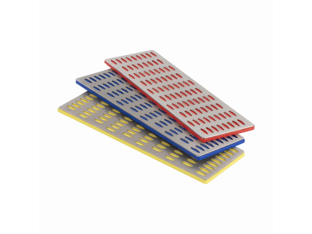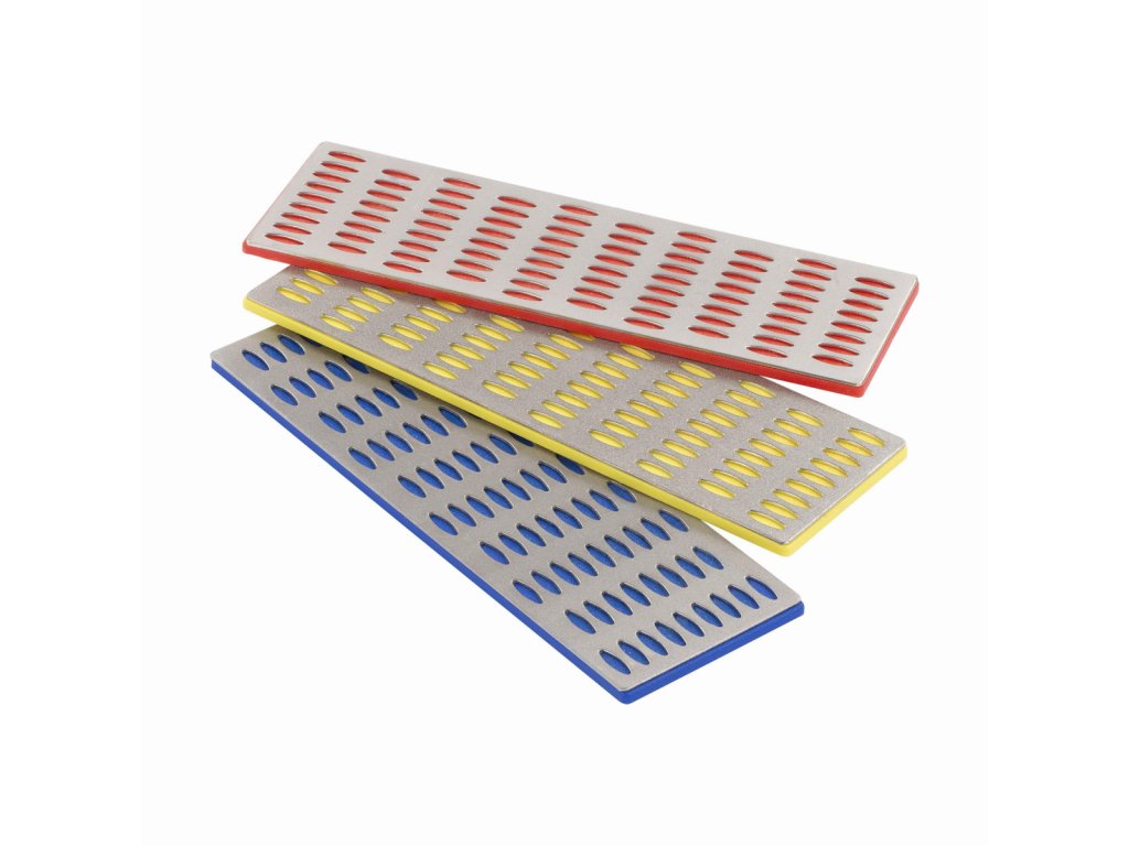 Nabrousíte si nůžky, dláta, škrabky a pilové listy s touto praktickou sadou KRTH50210 z naší řady Kreator. Tři diamantové brusné desky měří 152 x 50 mm a každý má jinou zrnitost: G 325, G 600 a G 1 200.