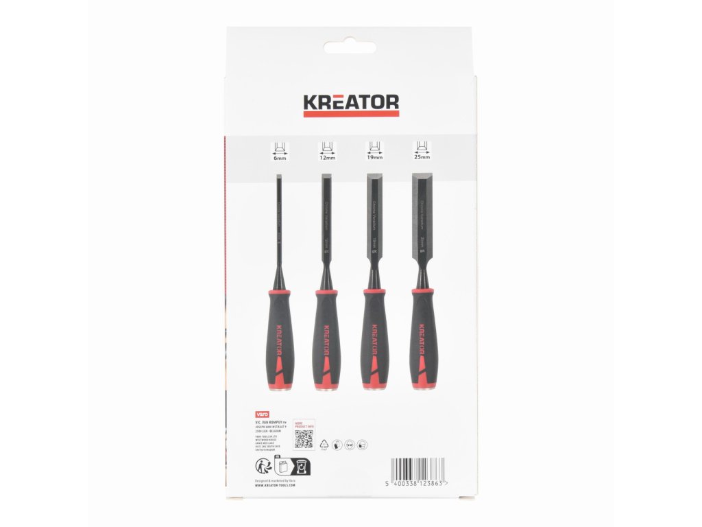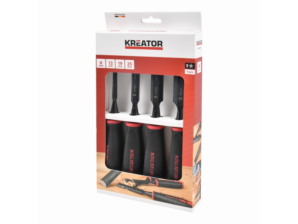 Dláto na dřevo je nezbytné pro každého kutila, který pracuje se dřevem. S těmito 4 plochými dláty KRTH23709 z naší řady Kreator na dřevo vysekáte různé tvary do dřeva. Jsou dlouhá 260 mm a každá čepel má jinou šířku: 6 / 12 / 19 / 25 mm. Díky robustní úderové hlavě v zadní části dláta můžete snadno použít kladivo pro vynaložení větší síly. Měkká protiskluzová rukojeť poskytuje pevný úchop.