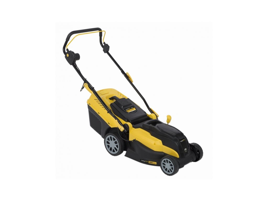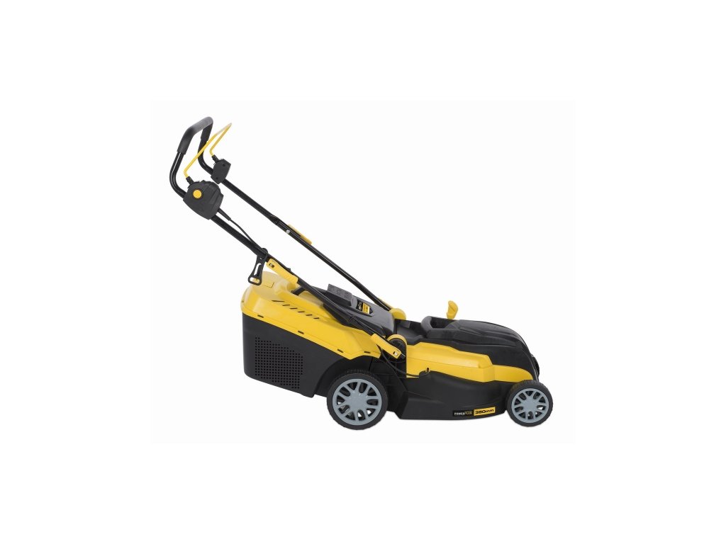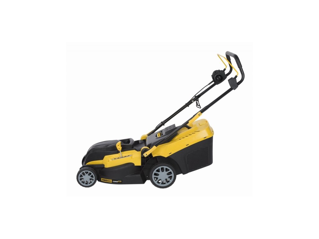Elektrická sekačka 1600W 380mm. , Napětí - 230 - 240V / 50Hz, Příkon - 1.600 W, Otáčky naprázdno - 3.450 min-1, Záběr sečení - 380 mm, Centrální nastavení výšky - 25-75 mm, Objem koše - 40 L, Velikost předních kol - 150 mm, Velikost zadních kol - 200 mm, Hmotnost - 11 kg...