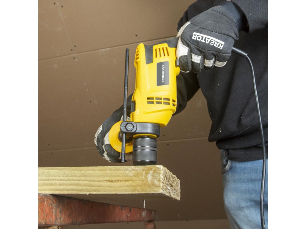 Tato příklepová vrtačka POWX0271 od Powerplus s výkonem 850 W vám umožní vrtat do pevných materiálů mnohem rychleji a snadněji než při použití standardní vrtačky. Můžete ji použít pro vrtání i vrtání s příklepem. Budete moci vrtat do materiálů, jako je ocel a beton, s frekvencí úderů 48 000 úderů/min.