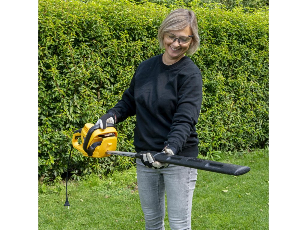 Tento elektrický plotostřih POWXG20081 od PowerPlus je vybaven 600W motorem, který vám umožní rychle stříhat živé ploty a keře se skvělými výsledky. Díky čepeli dlouhé 610 mm snadno zastřihnete malé až středně velké živé ploty. Jeho protiběžné nože vám umožní řezat větve o tloušťce až 24 mm. Dvojčinná čepel se skládá ze dvou samostatných čepelí pohybujících se v opačných směrech. Navíc jsou to čepele řezané laserem a poskytují lepší výsledky řezání. Tyto elektrické nůžky na živý plot jsou vybaveny elektrickou bezpečnostní brzdou, která po vypnutí nářadí okamžitě zastaví pohyb nožů. Zaručuje vaši bezpečnost za všech okolností. Pravidelným stříháním bude váš živý plot plnější a uhlazenější.