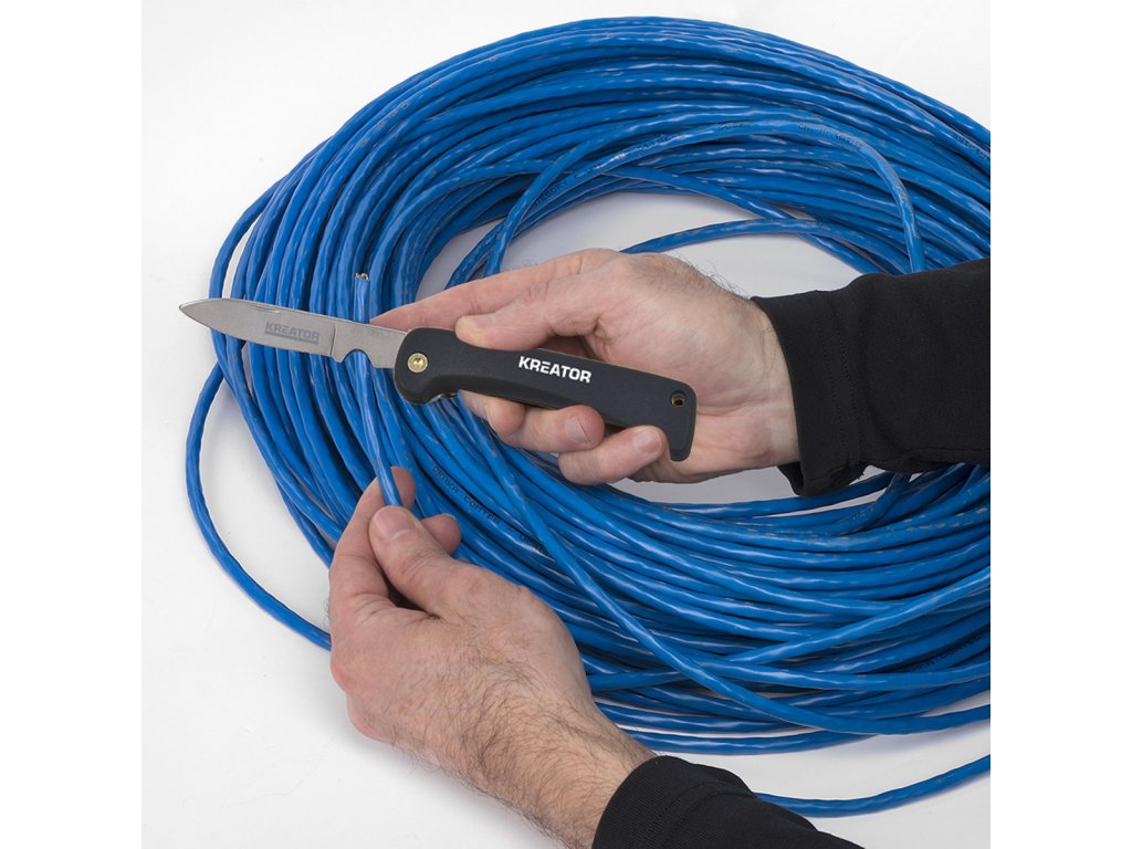 Elektrikářský nůž. Tento elektrikářský nůž KRTH00801 od Kreator je obzvláště užitečným nástrojem při práci s elektrickými kabely a elektroinstalací. Díky ostré čepeli snadno přeříznete jakýkoli vodič na míru. Praktický malý zářez lze použít k rychlému odizolování kabelů. Samotný nůž je skládací...
