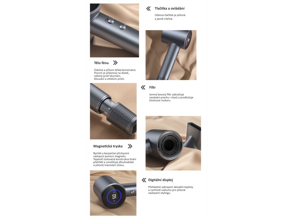 - Rychlejší sušení bez zbytečného přehřívání vlasů