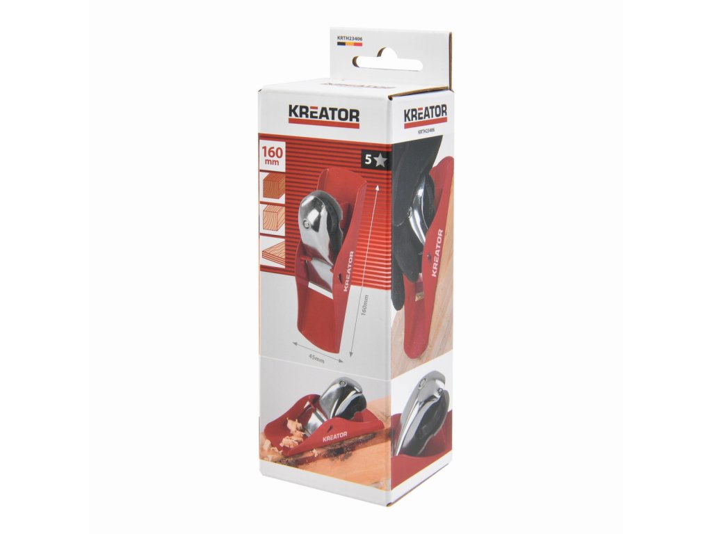 Hoblík ruční 160mm. Tento hoblík na dřevo KRTH23406 z naší řady Kreator o délce 160 mm je ideální pro hoblování, zmenšování tloušťky a vyhlazování nerovných dřevěných povrchů. Robustní čepel je vyrobena z oceli, takže je extrémně ostrá a odolná proti opotřebení. Čepel z oceli 65Mn má šířku 45 mm...