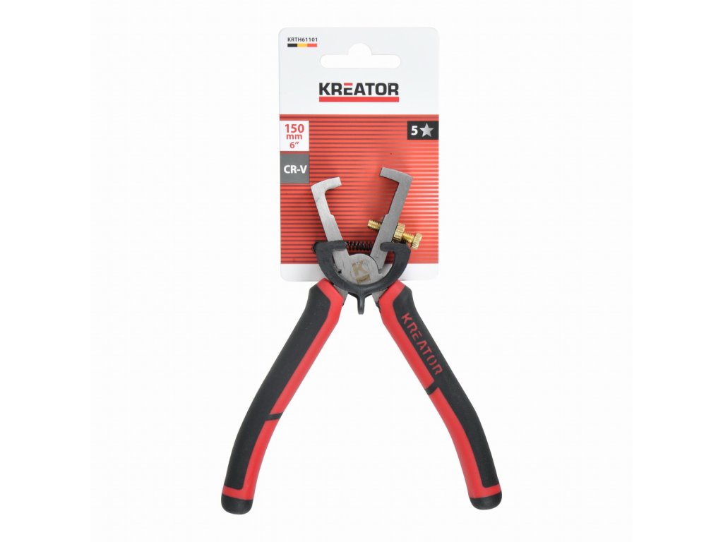 Tyto odizolovací kleště KRTH61101 od Kreator jsou vyrobeny z chrom-vanadiové oceli a mají délku 150 mm. Používejte je k snadnému odstranění izolačního materiálu obklopujícího elektrické vodiče, aniž byste je poškodili. Měkké gumové rukojeti poskytují pevný, protiskluzový úchop a pohodlné používání. Pomocí šroubu zvolte správnou hloubku řezu.