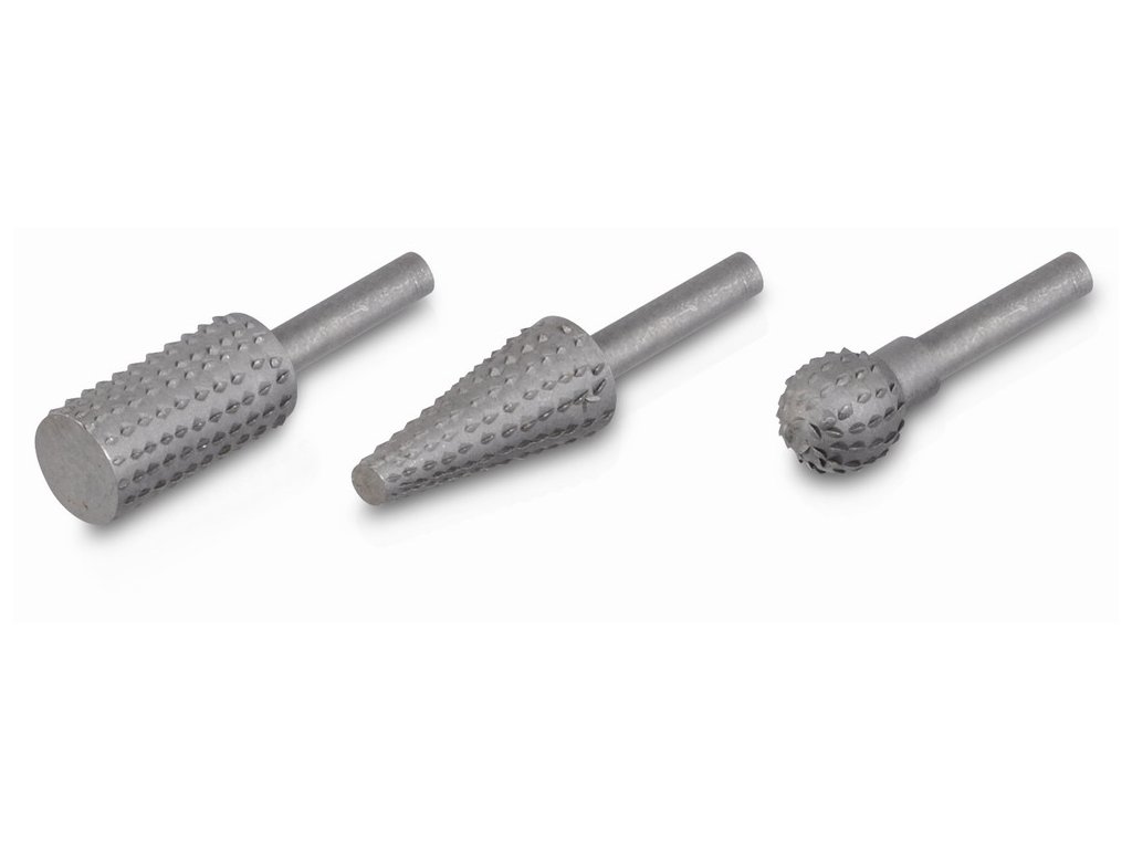 Tato sada obsahuje 3 rotační pilníky, ideální pro pilování a broušení různých druhů dřeva. Najdete v ní tři typy tvarovacích fréz: zaoblenou, kuželovou (pro rohy) a válcovou (pro čištění otvorů nebo oblouků).
