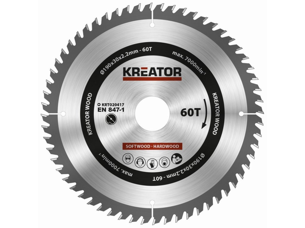 Pilový kotouč na dřevo 190mm, 60T KREATOR KRT020417