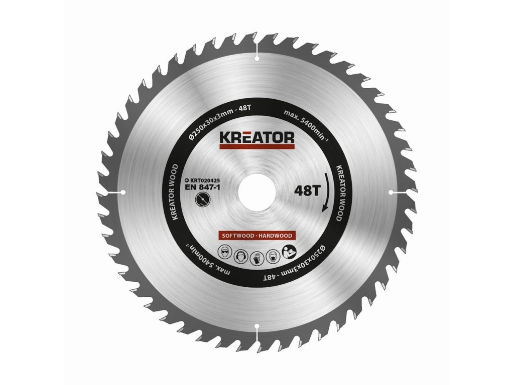 Pilový kotouč na dřevo 250mm, 48T KREATOR KRT020425