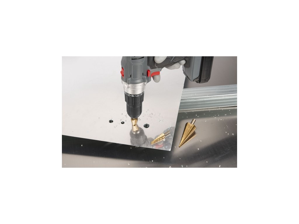 Vysoce kvalitní vrtací souprava HSS-TIN stupňovitých vrtáků.Rozměr vrtáku 1 : 4-12 mm