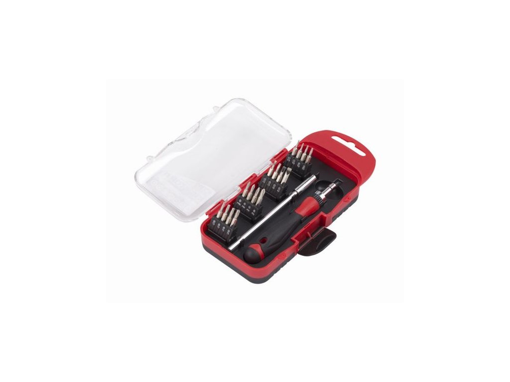 Ráčnový set bitů 18ks. - 120 mm prodlužovací nástavec- Ráčnový šroubovák- Bity: SL2.0, SL2.5, SL3.0, SL4.0, PH00, PH0, PH1, PH2, T4, T5, T6, T7, T8, T9, T10, T15- magnetický, Materiál - Chrome vanadium...