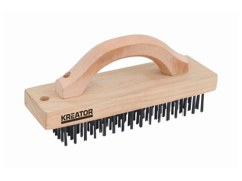 Ruční drátěný ocelový kartáč 6-ti řadý, dřevěný KREATOR KRT561001