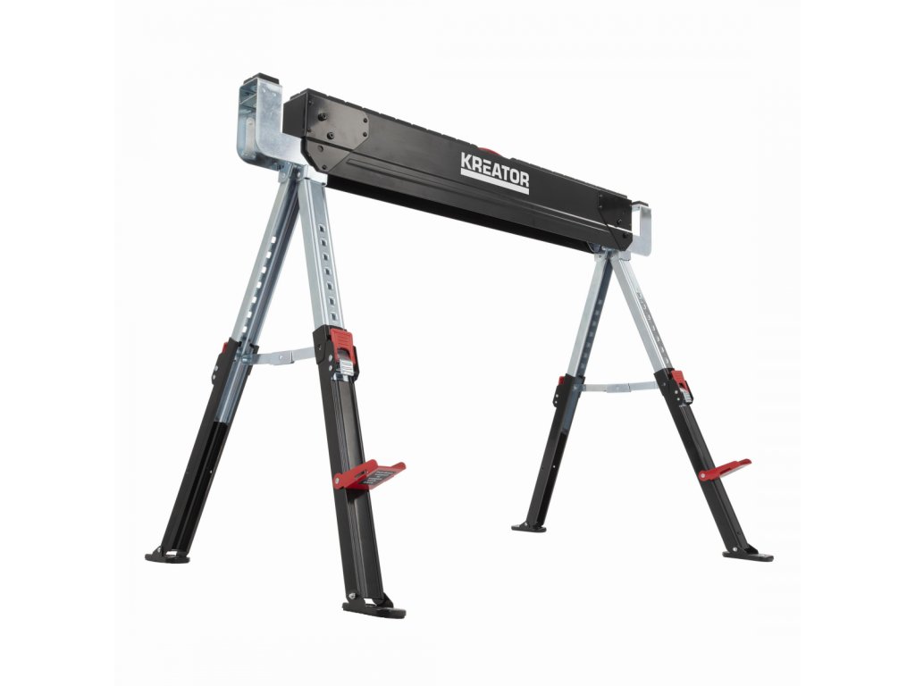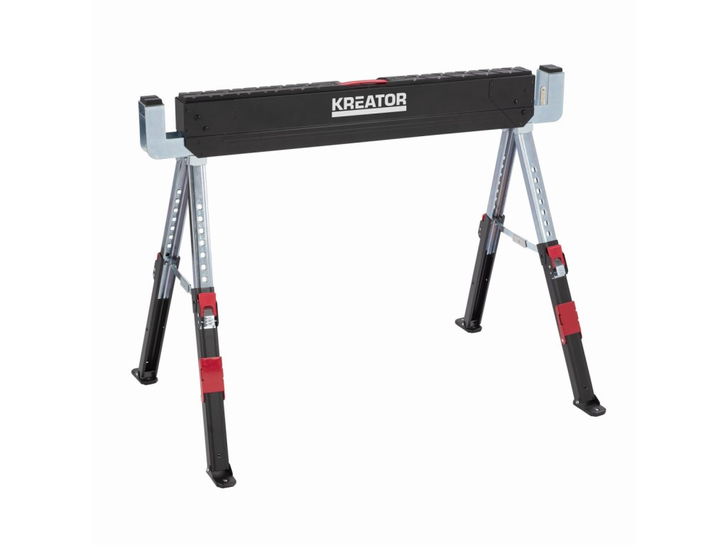 Tato teleskopická podpěra KRT671004 z naší řady Kreator je výškově nastavitelná od 618 do 820 mm. Podpěra je osazena robustním ocelovým rámem s nastavitelnými a otočnými nohami, které zajišťují, že je podpěra vždy mimořádně stabilní. Je skládací a snadno se skladuje. Teleskopickou podpěru v páru můžete kombinovat jako pracovní stůl pro uchycení větších předmětů. Unese neuvěřitelnou váhu až 589 kg.