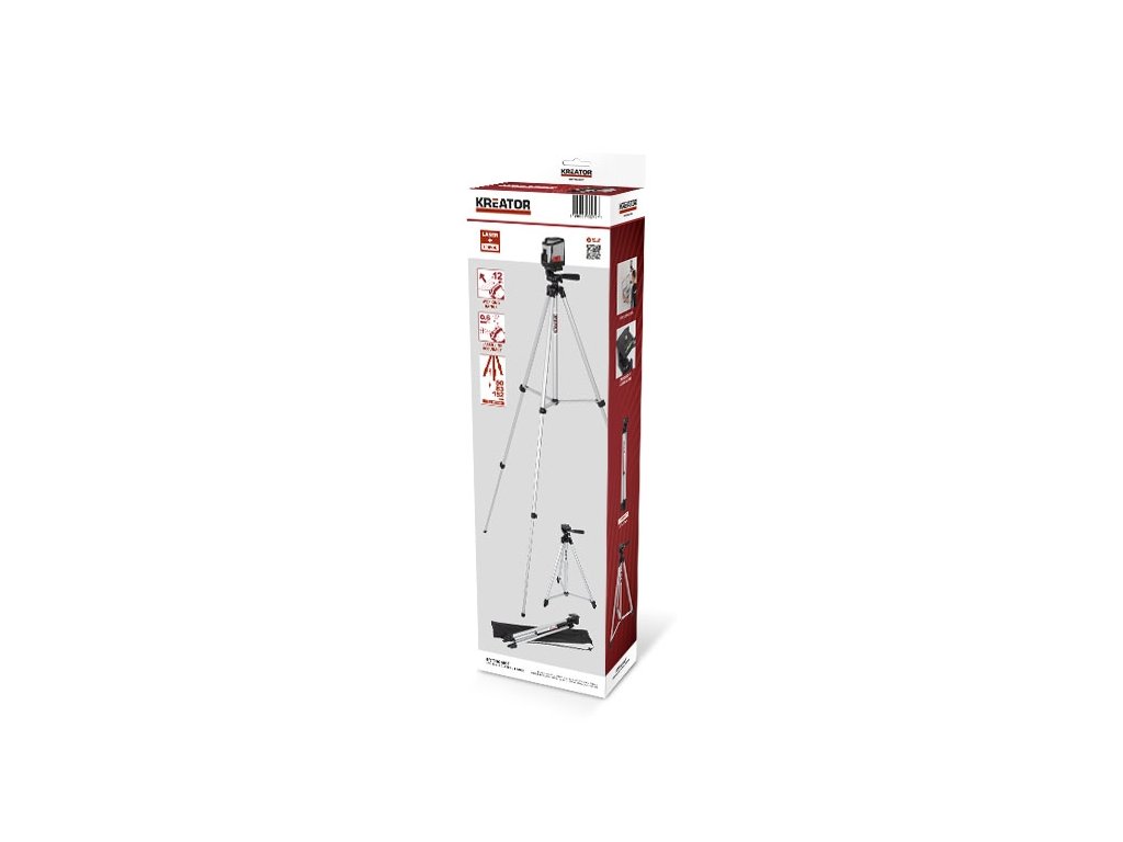 Od této chvíle budete obkládat zeď nebo zavěšovat věci přesně a rovně, protože jste schopni promítat horizontální a vertikální čáry velmi přesně. To je to, co můžete očekávat od tohoto křížového laseru Kreator, který dosahuje až 12 metrů daleko. Samonastavovací křížový laser se vyrovná do šesti sekund s přesností 0,6 mm / metr. Umístěte KRT706300T přímo na stůl nebo skříň a nebo jej umístěte ještě stabilněji na dodávaný hliníkový stativ. Jeho výška je nastavitelná od 50 cm do 152 cm, jak vám bude nejlépe vyhovovat.TECHNICKÁ SPECIFIKACE: