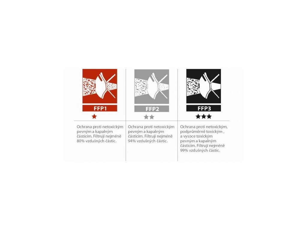 Respirátor FFP2 3 ks. Ochrana proti netoxickým tuhým a kapalným částicím (např. olejové mlhy). Filtrace alespoň 94procent vzdušných částic...