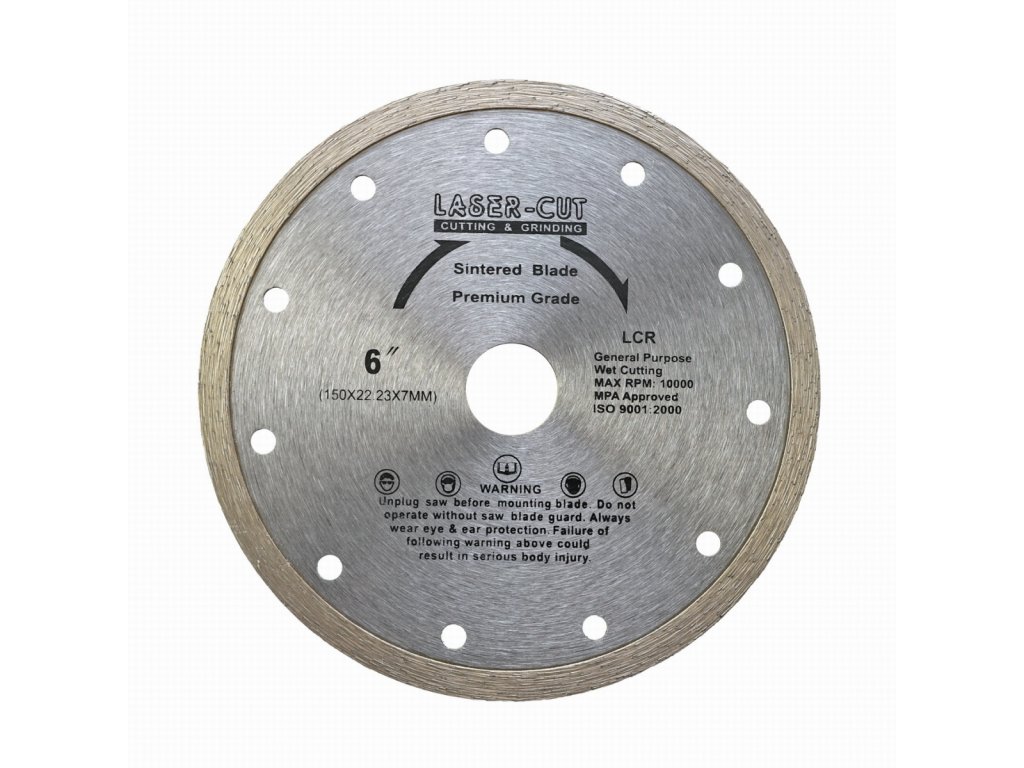 Diamantový kotouč celoobvodový 150 x 22,23 x 7mm LCR. Tyto kotouče poskytují hladký a přesný řez.Ideální pro řezání keramických obkladů, dlažeb, mramoru a porcelánu.Doporučení chladit, Průměr kotouče - 150 mm, Výška segmentu - 7 mm, Upínací otvor - 22,23 mm, Řezný typ - celoobvodový...