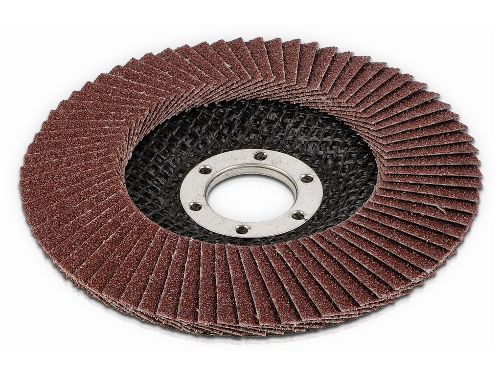 Lamelový brusný kotouč 115mm G80. Materiál korund : univerzální použití, pro hliník, měkké neželezné kovy a jejich slitiny, běžné druhy konstrukčních ocelí, plasty, dřevo, litiny....