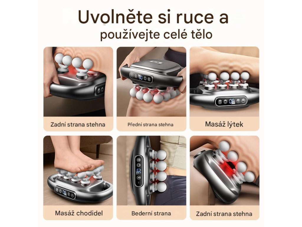Přístroj je navržen tak, aby poskytoval cílenou masáž různých svalových skupin a pomáhal uvolnit napětí po fyzické zátěži, dlouhém sezení nebo při chronických obtížích.