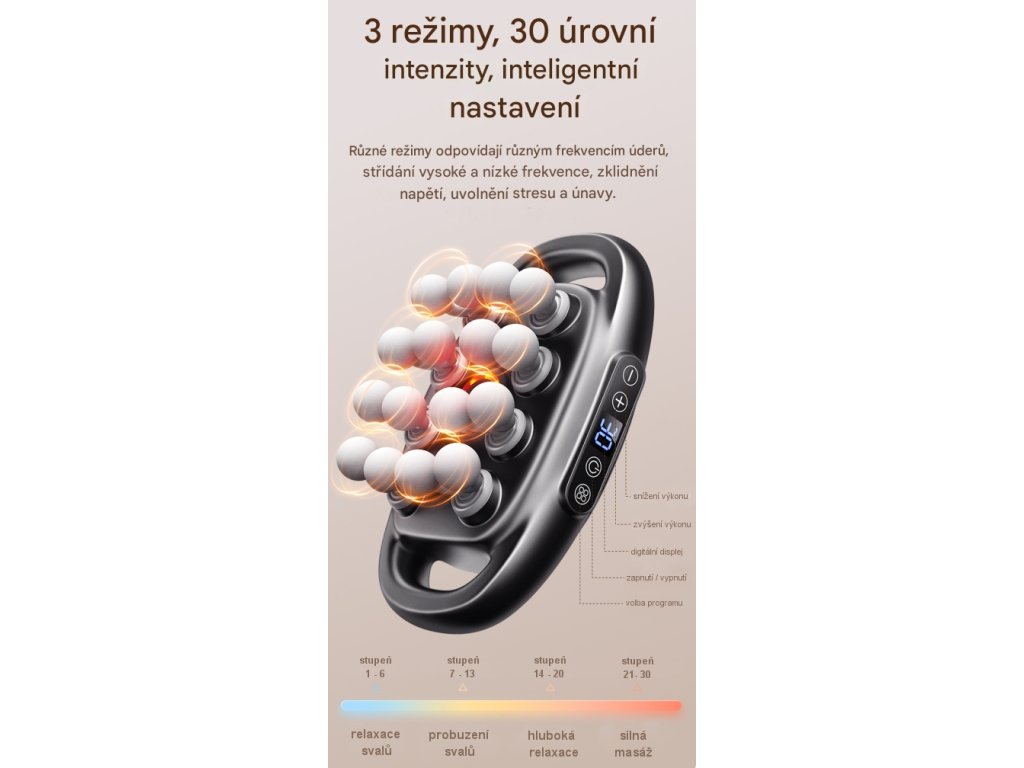 - Režimy a intenzita - 3 režimy, 30 nastavitelných úrovní