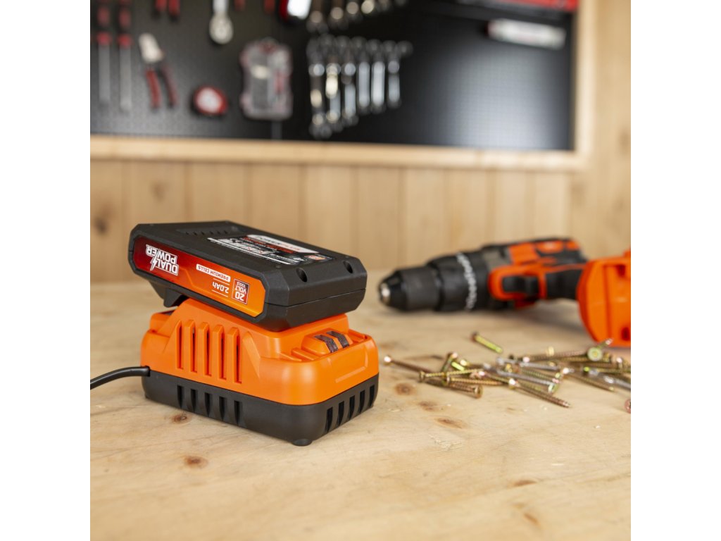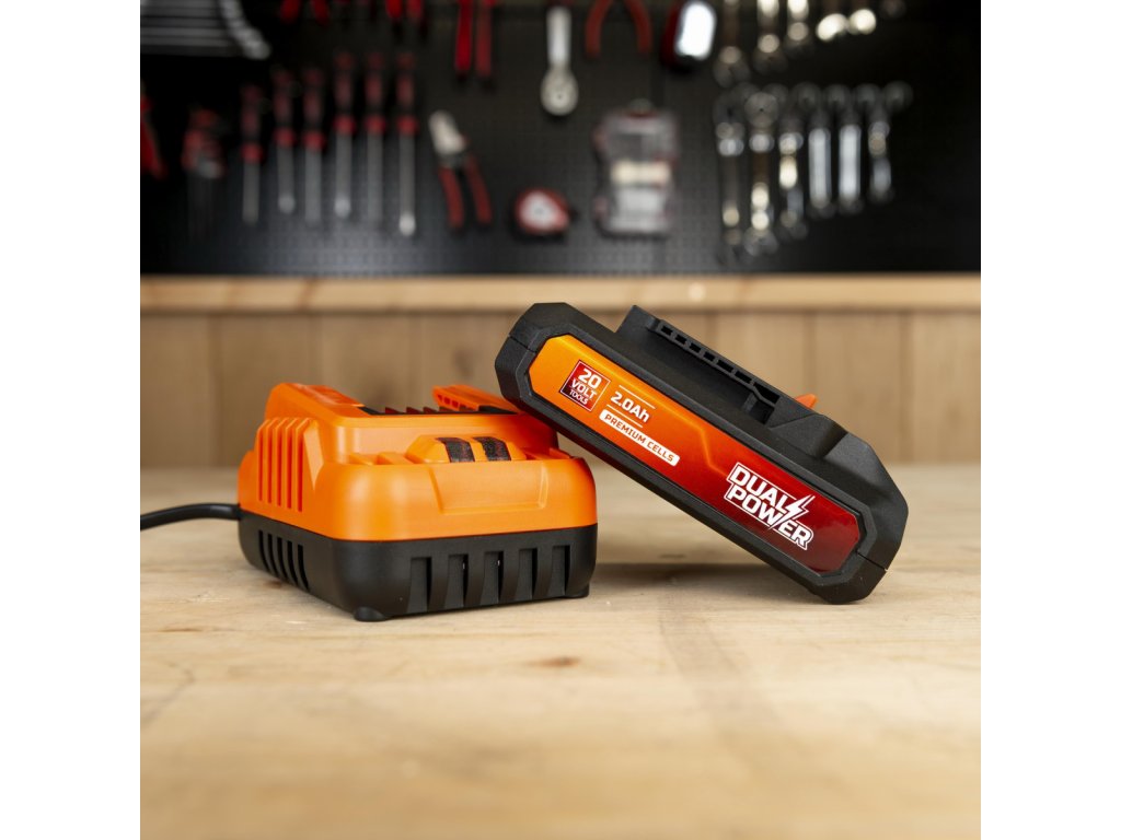 Nabíječka 20V/40V 2.0A plus Baterie 20V LI-ION 2,0Ah. Tato sada POWDP90620 od Powerplus obsahuje vše, co potřebujete, abyste mohli začít s nářadím Dual Power, 20 V baterii a odpovídající nabíječku. Tato 20V baterie je kompatibilní se všemi elektrickými a zahradními nástroji 20 V řady Dual...