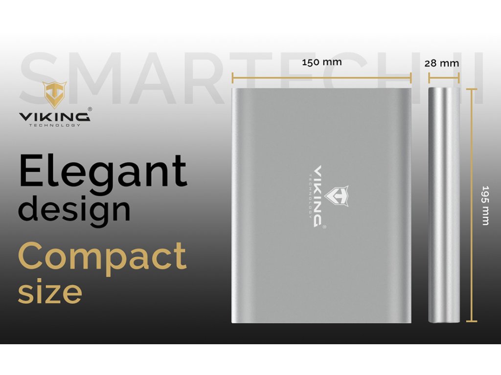 Tenký profil, hladké linie a kvalitní materiály dělají z naší powerbanky stylový doplněk pro vaše každodenní nošení. Kovová odolná slitina je jak elegantní, tak velmi odolná! Ať už jste v obleku na pracovním jednání nebo na cestách, powerbanka Viking SMARTECH II vždy udělá skvělý dojem.