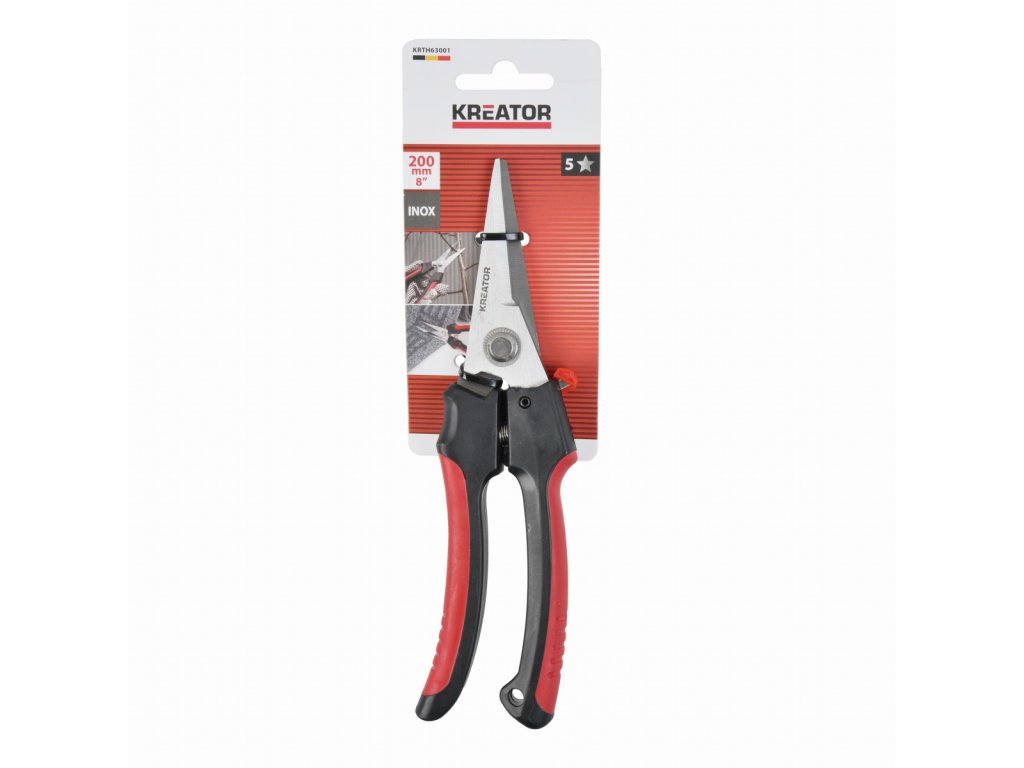 Tyto robustní nůžky KRTH63001 z naší řady Kreator jsou ideální pro náročné použití. Koberce, tenké větve, provazy, zkrátka cokoli si vzpomenete, tyto nůžky to stříhají. Jsou dlouhé 200 mm a opatřeny měkkými rukojeťmi. Čelisti jsou rovné pro dosažení dokonale rovných řezů.