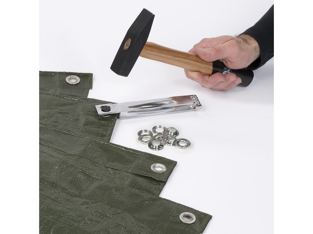 Tento ruční nástroj na průchodky / očka KRTH62507 z naší řady Kreator lze použít k připevnění průchodek s maximálním průměrem 10 mm k plachtám a jiným textiliím. To se provádí pomocí kladiva.