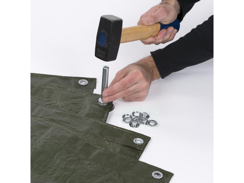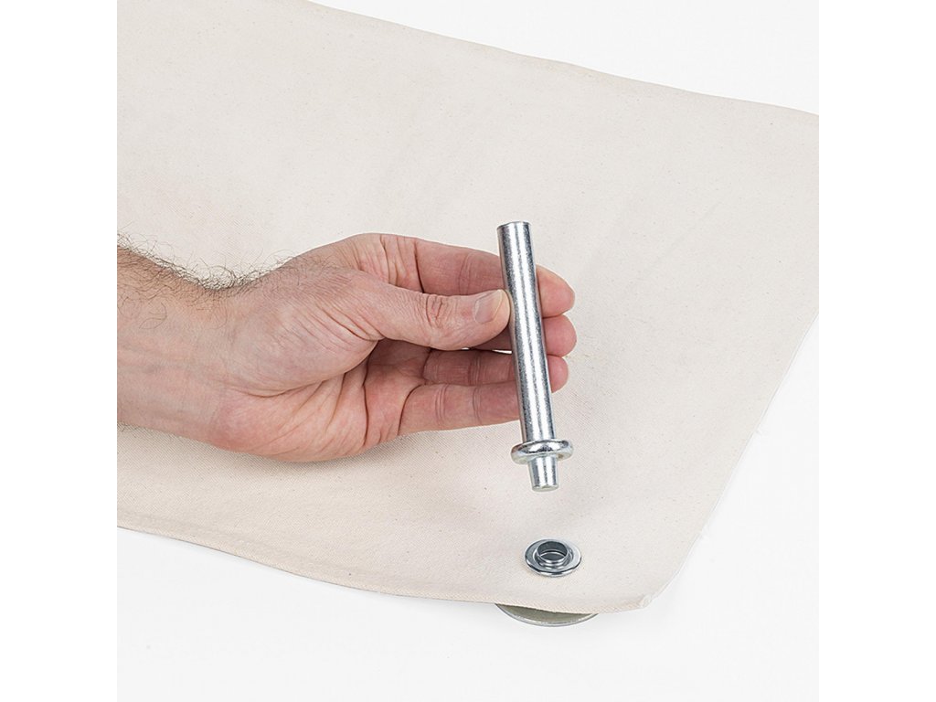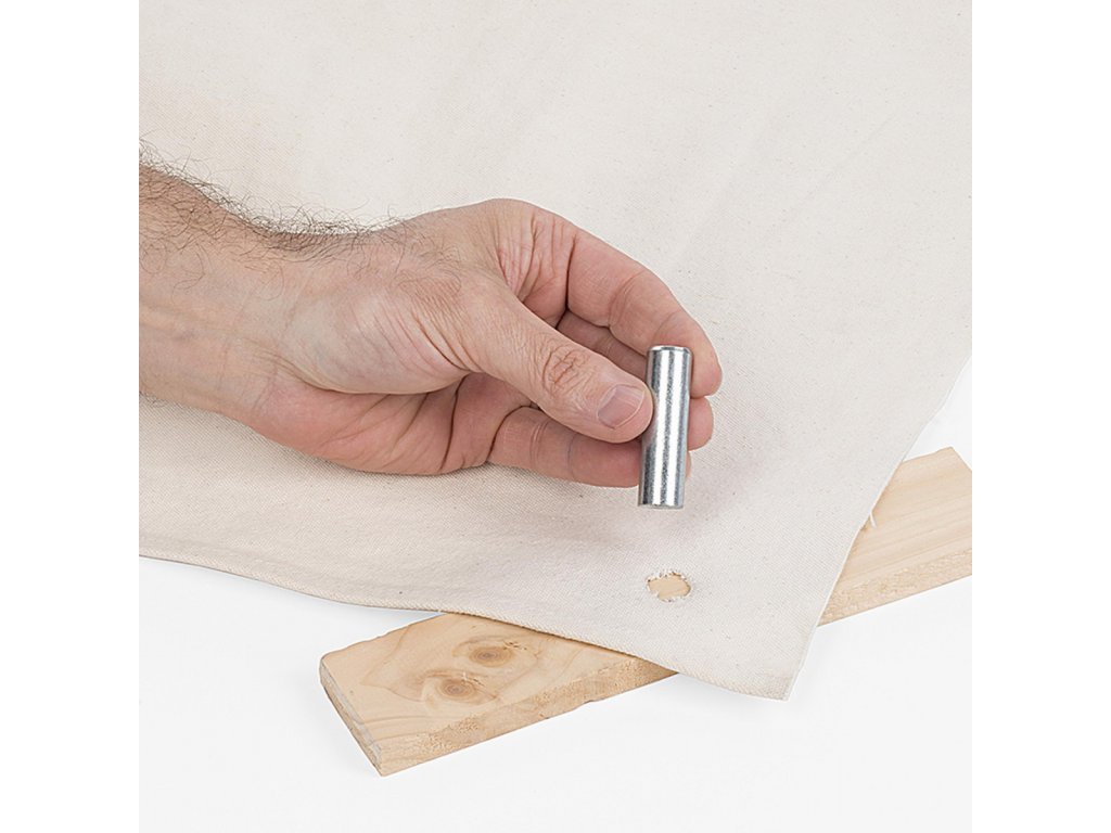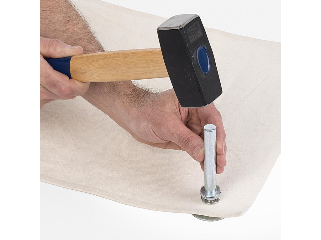 Tento ruční nástroj na nýtovací očka KRTH62509 od Kreator lze použít k připevnění oček s maximálním průměrem 12,5 mm k plachtám a jiným textiliím. Toto se provádí pomocí kladiva.