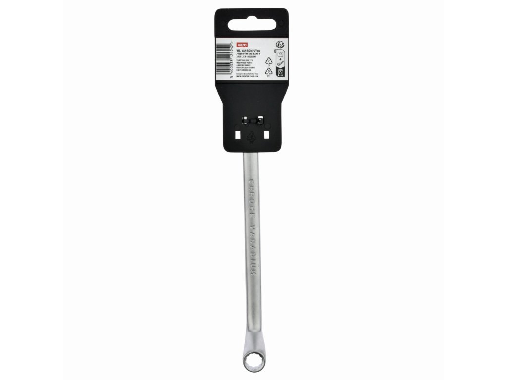 Tento dvojitý očkový klíč KRTH30303 z naší řady Kreator má délku 150 mm a je vyroben z vysoce kvalitní chrom-vanadiového slitiny. Osazené kroužky zajišťují efektivnější přenos vyvíjené síly. Konce mají otvory různých velikostí. Jeden má velikost 10 a druhý 11 mm.