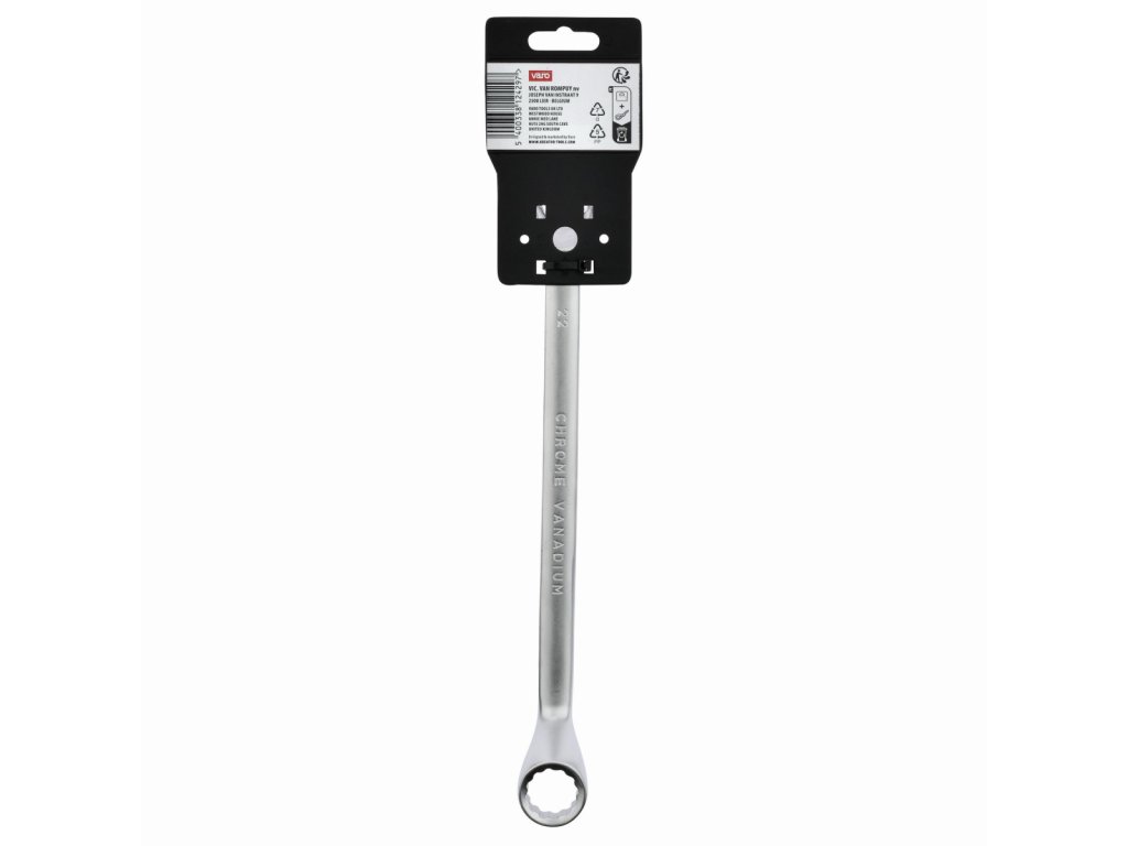 Tento dvojitý očkový klíč KRTH30308 z naší řady Kreator má délku 225 mm a je vyroben z vysoce kvalitní chrom-vanadiového slitiny. Osazené kroužky zajišťují efektivnější přenos vyvíjené síly. Konce mají otvory různých velikostí. Jeden má velikost 20 a druhý 22 mm.