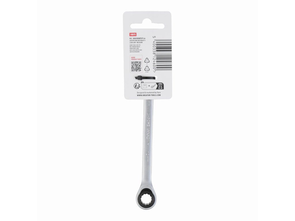 Tento kombinovaný očko ráčna / otevřený klíč KRTH30503 od Kreator je vyroben z vysoce kvalitní chrom-vanadiové slitiny. Délka klíče je 154 mm a má průměr 10 mm. Očko je opatřeno kvalitním strojkem, který má 72 zubů.