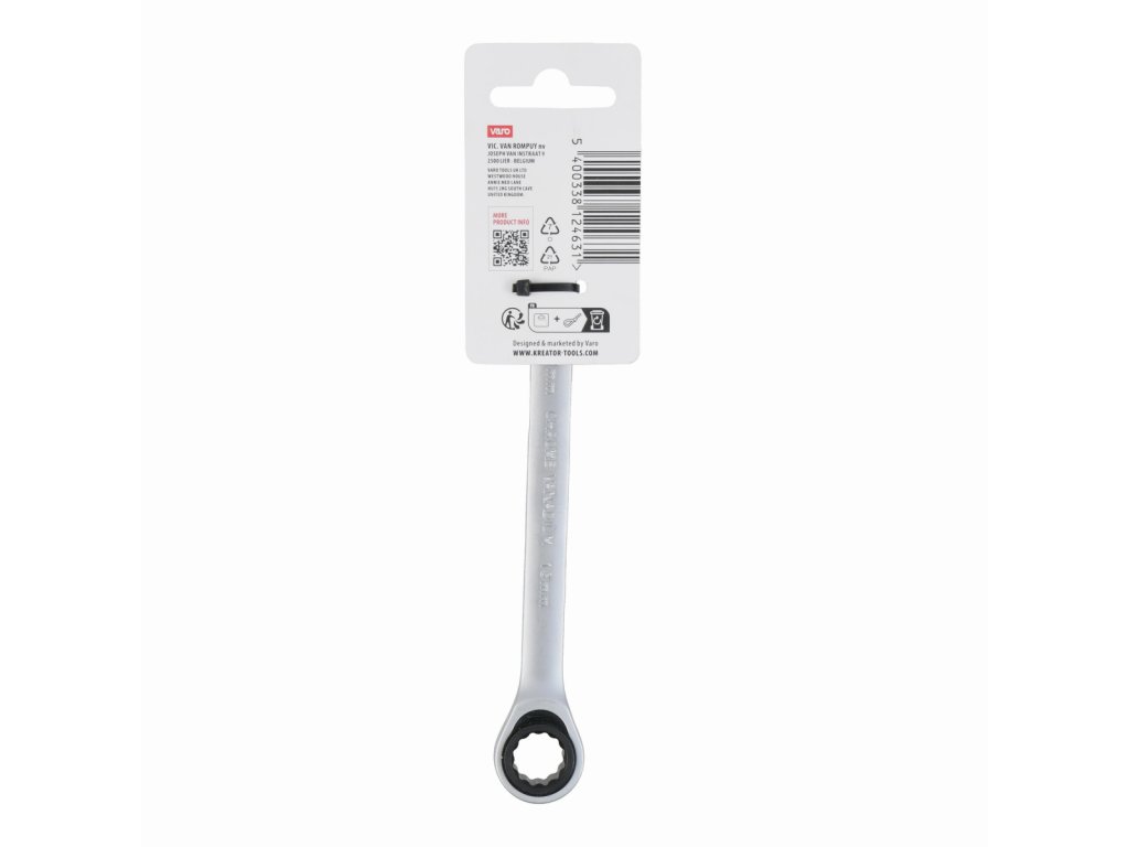 Tento kombinovaný očko ráčna / otevřený klíč KRTH30506 od Kreator je vyroben z vysoce kvalitní chrom-vanadiové slitiny. Délka klíče je 178 mm a má průměr 13 mm. Očko je opatřeno kvalitním strojkem, který má 72 zubů.