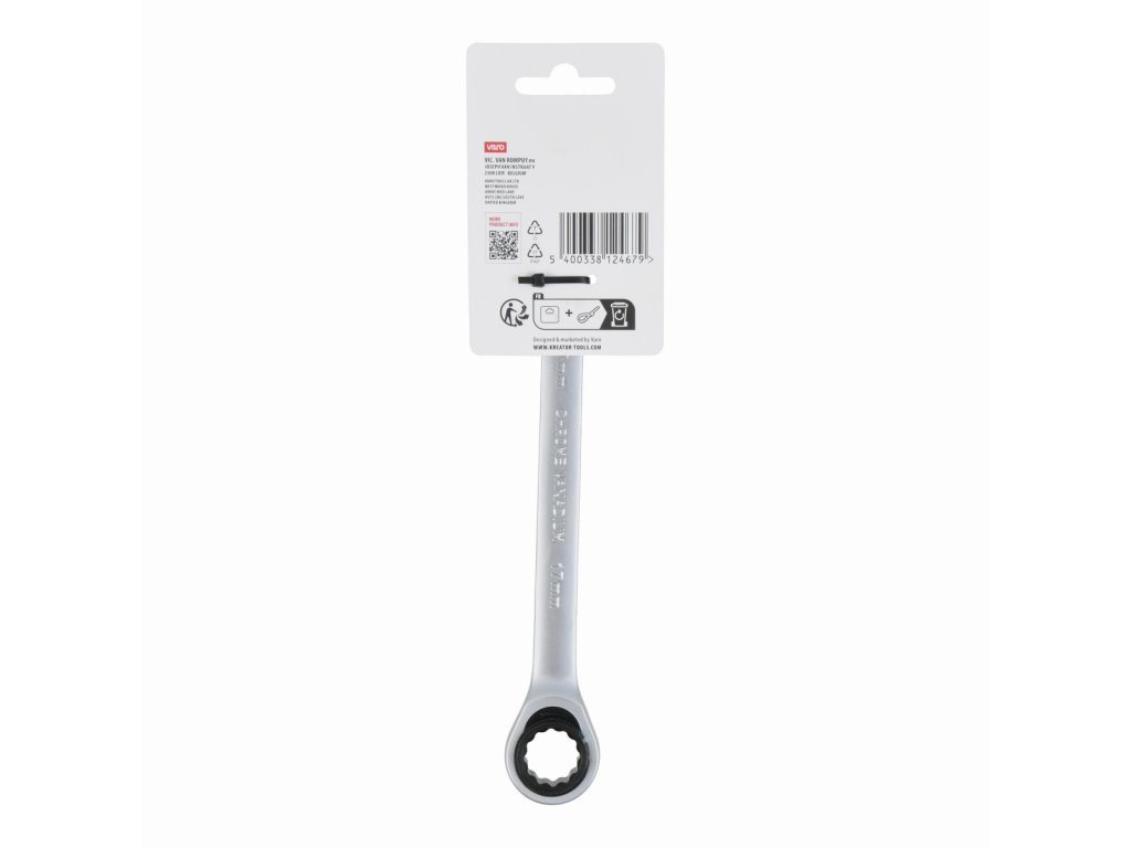 Tento kombinovaný očko ráčna / otevřený klíč KRTH30510 od Kreator je vyroben z vysoce kvalitní chrom-vanadiové slitiny. Délka klíče je 222 mm a má průměr 17 mm. Očko je opatřeno kvalitním strojkem, který má 72 zubů.