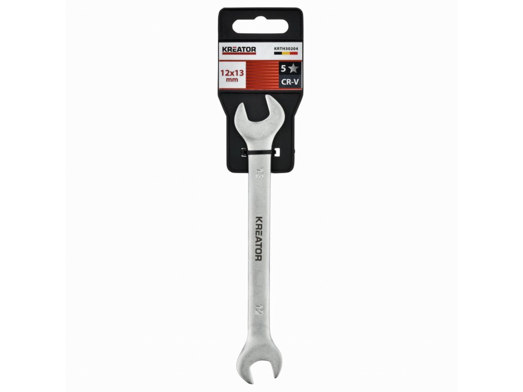Tento dvojitý otevřený klíč KRTH30204 značky Kreator má délku 165 mm a je vyroben z vysoce kvalitního chrom-vanadiového slitiny. Konce mají otvory různých velikostí. Jeden je široký 12 mm a druhý 13 mm.