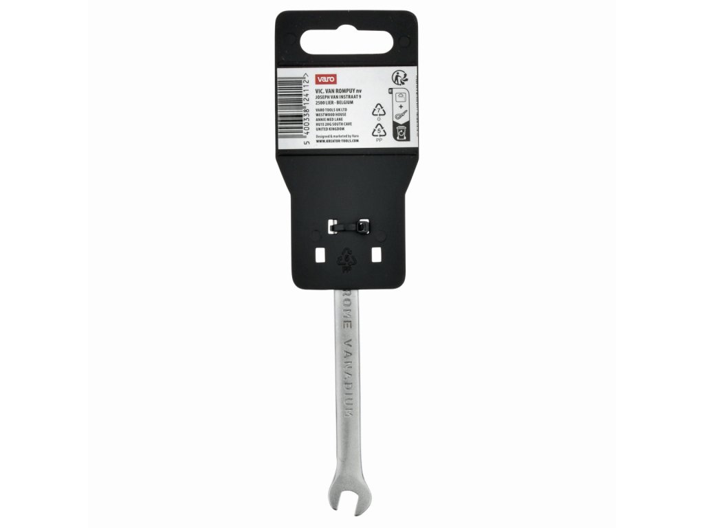 Tento dvojitý otevřený klíč KRTH30201 značky Kreator má délku 120 mm a je vyroben z vysoce kvalitního chrom-vanadiového slitiny. Konce mají otvory různých velikostí. Jeden je široký 6 mm a druhý 7 mm.