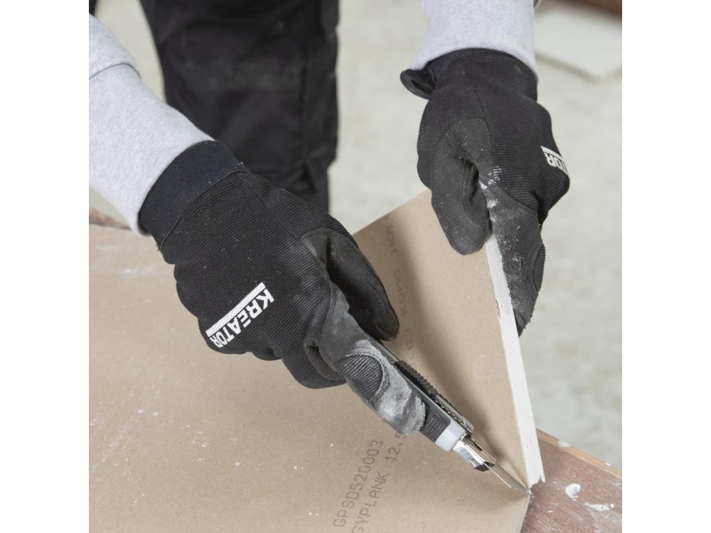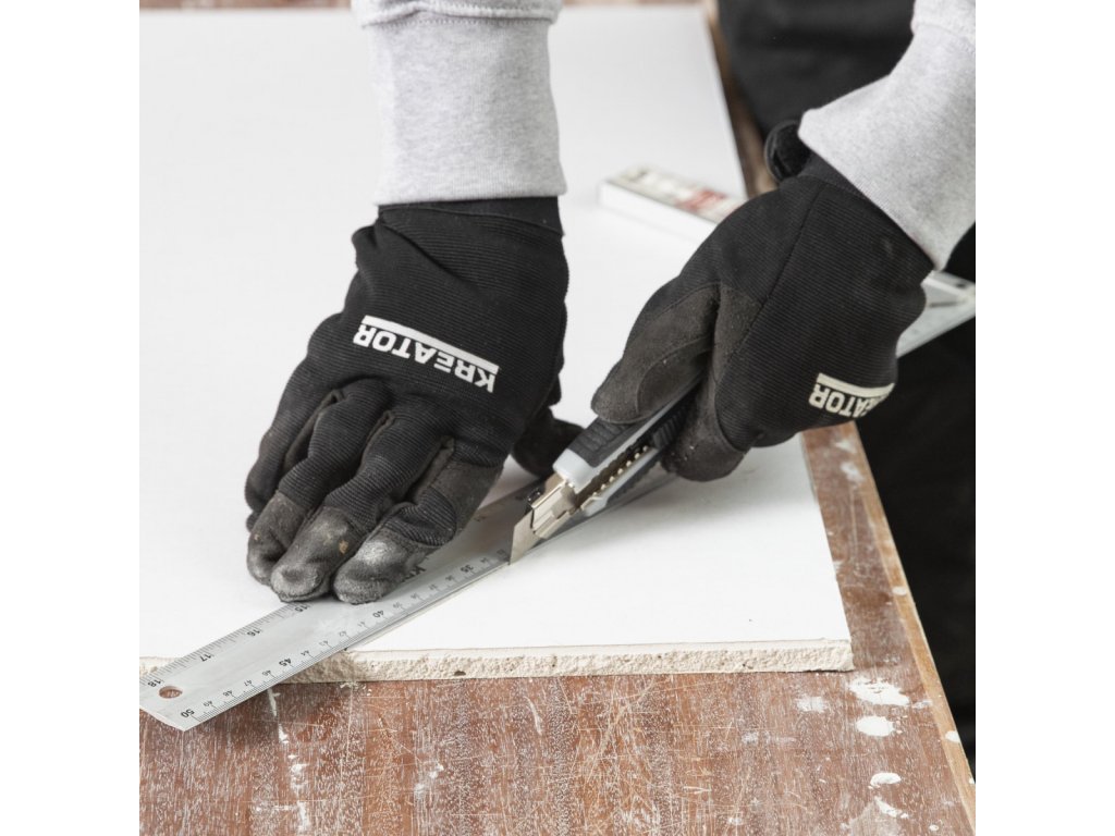 Snadno řežte papír, karton, tapetu, pásku a další materiály s tímto KRTH00205 od Kreator extra dlouhým odlamovacím nožem o délce 100 mm. Měkká gumová rukojeť poskytuje lepší úchop a pohodlné používání nástroje. Rukojeť je také vybavena ořezávátkem. Pro vaši bezpečnost se čepel dá po použití okamžitě zasunout zpět. Čepel můžete zaaretovat pomocí zajišťovacího mechanismu. Když bude potřeba nová, ostřejší čepel, jednoduše odlomíte tupou část pomocí odlamovače na čepel. Odlamovací nůž je navíc dodáván s pěti náhradními čepelemi, které můžete uložit do duté rukojeti.