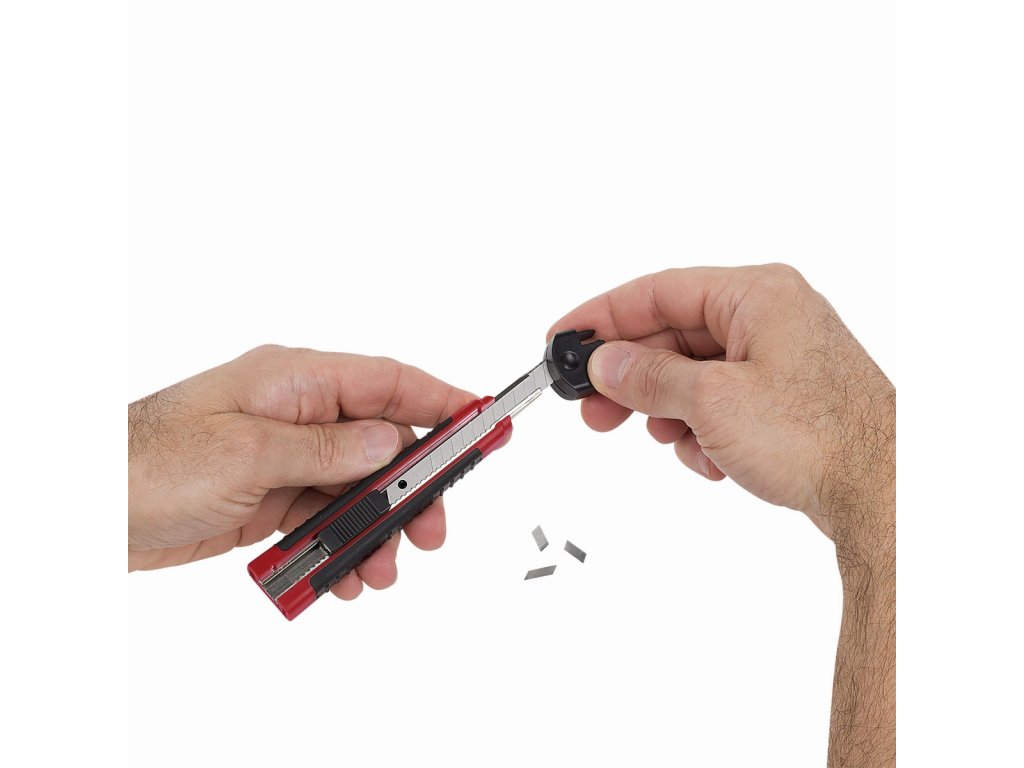 Snadno řežte papír, karton, tapetu, pásku a další materiály s tímto KRTH00106 od Kreator extra dlouhým odlamovacím nožem o délce 80 mm. Měkká gumová rukojeť poskytuje lepší úchop a pohodlné používání nástroje. Pro vaši bezpečnost se čepel dá po použití okamžitě zasunout zpět. Čepel můžete zaaretovat pomocí zajišťovacího mechanismu. Když bude potřeba nová, ostřejší čepel, jednoduše odlomíte tupou část pomocí odlamovače na čepel. V duté rukojeti lze uložit až tři náhradní čepele.